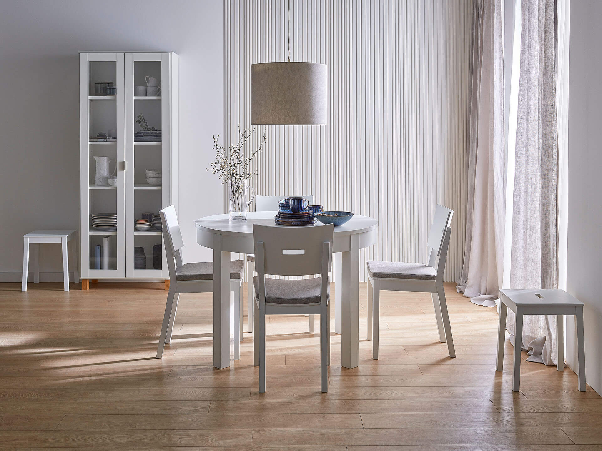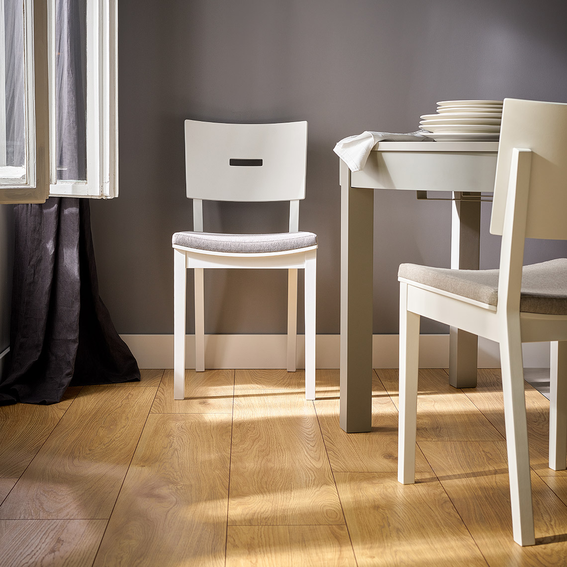 Chairs from the Simple collection are available in 4 colors: white, black, gray and oak. Each comes in a version with or without an upholstered seat.