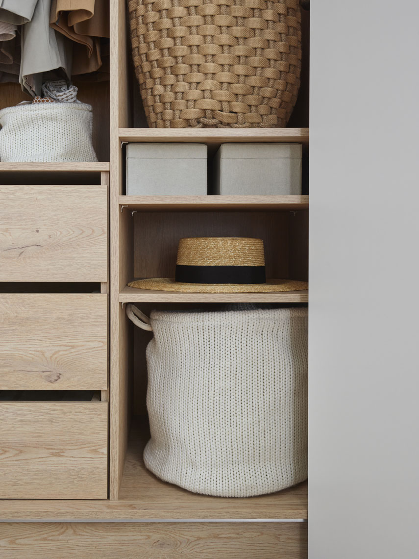 • The body of the Stor closet is oak in color. The appearance of the side can be changed by installing a dedicated overlay in the color of your choice.