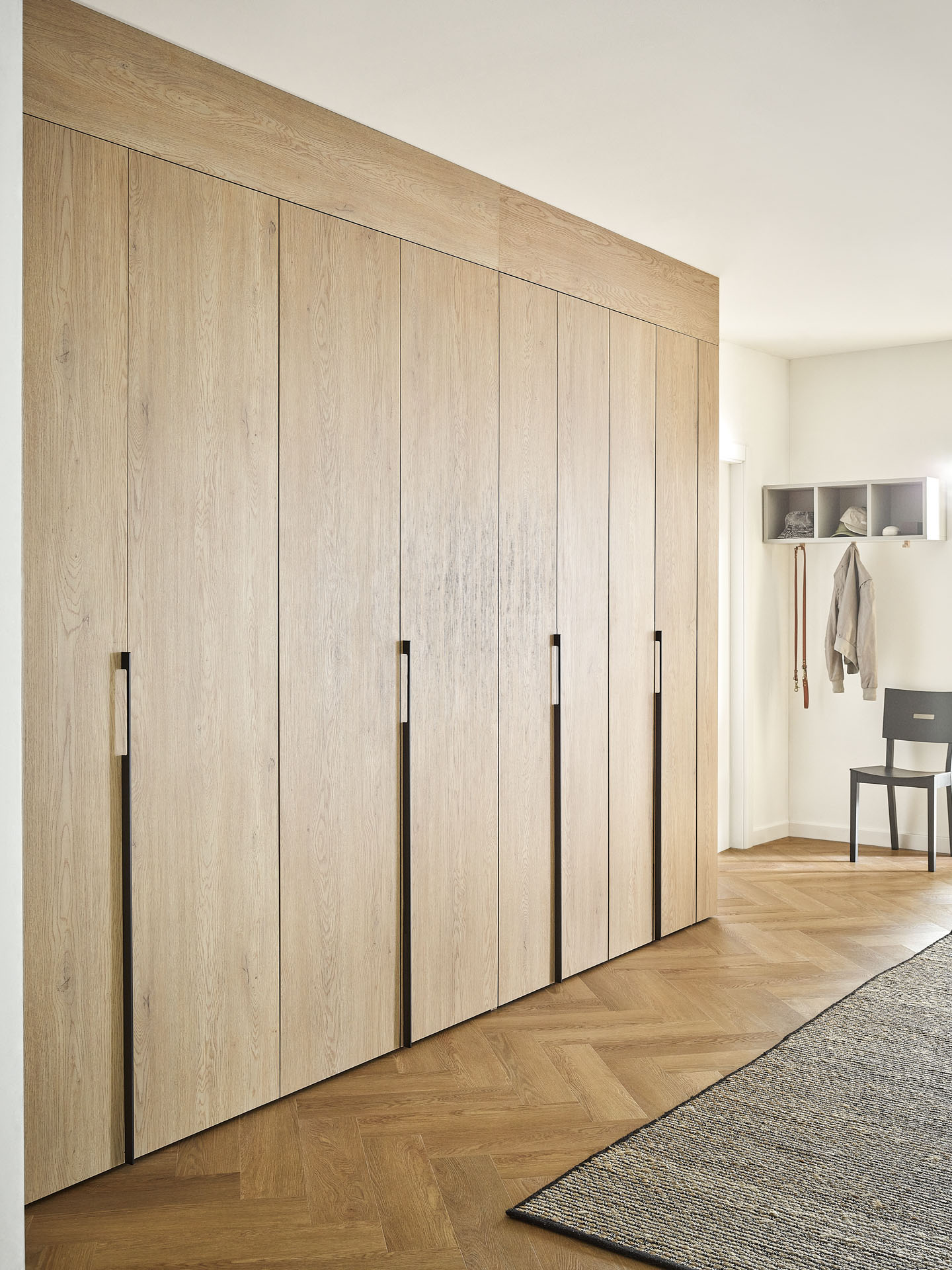 • In the VOXBOX program you can check how the Stor wardrobe will look in the arrangement of a given interior. The collection goes well with, among others, Linerio slatted panels.