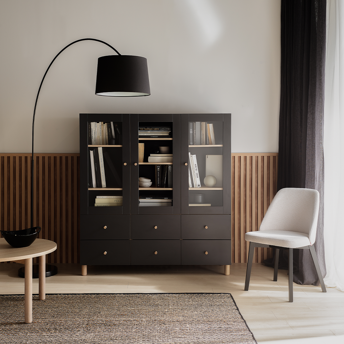 - Adjust the layout of the sideboard to your needs. With a variety of options for the arrangement of shelves and drawers, you can create the right space for your belongings. Choose for yourself whether you prefer to hide them in closed cabinets, or maybe you want to expose them on open shelves.