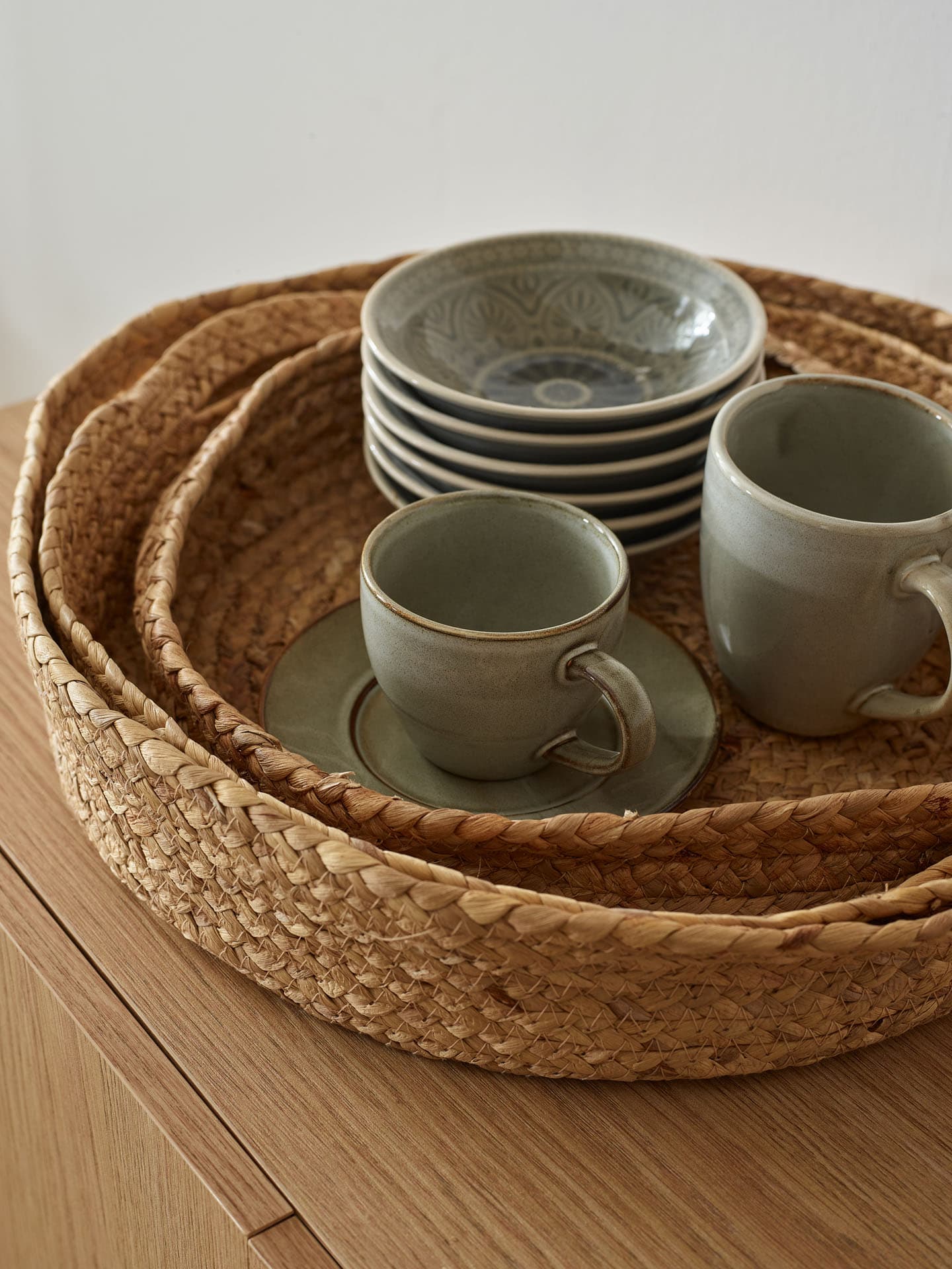 Each piece of the set impresses with its minimalist design and reactive glaze with an elegant, glossy finish, which creates unique patterns and gives the porcelain a noble character. The handmade finish ensures that no two pieces are identical - each is one-of-a-kind.