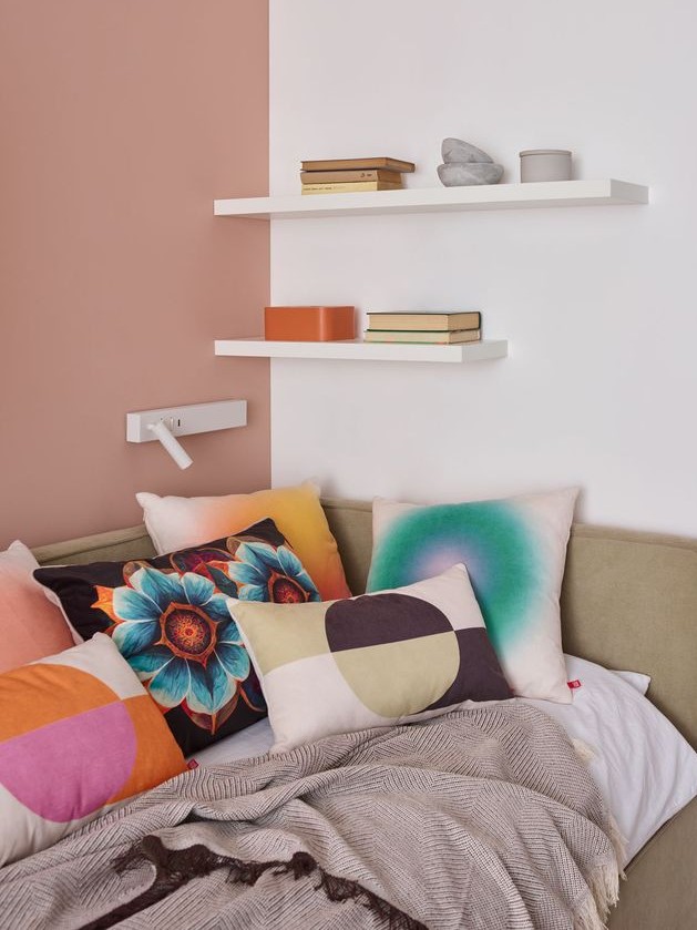 Kolor szafki nocnej może powtórzyć się w tekstyliach i dekoracjach. Dzięki temu uzyskamy harmonijną aranżację, bazującą na konkretnym motywie przewodnim. Wiele pytań otrzymamy o skrzynkę 4 You w energetycznym, niebieskim odcieniu, postawioną obok łóżka jako nietypowy stolik. Zestawiając ją z mniejszymi skrzynkami z tej samej kolekcji, uzyskamy równie spójny, co praktyczny zestaw, którego elementy będziemy mogli wygodnie przestawiać i przesuwać zgodnie z potrzebami.