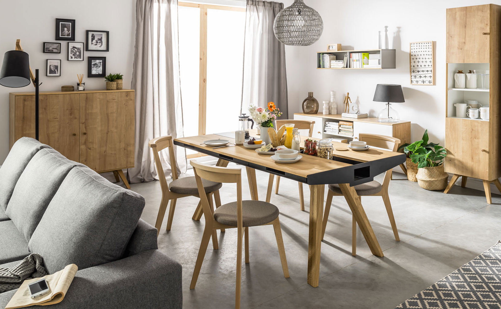 Stół do jadalni może w sobie mieścić kilka różnych funkcji. Model Spot pośrodku blatu posiada wnękę, w której możemy umieścić sztućce, przyprawy lub zioła w doniczkach. Jej boki są otwarte, co ułatwia przekształcenie stołu w wygodne miejsce pracy – przez wnękę możemy przeprowadzić kable od laptopa lub lampy. Jeszcze więcej miejsca do przechowywania kryje się w eleganckim stole Nature, który oprócz podłużnej metalowej wnęki na ciepłe naczynia posiada również pojemne szuflady.