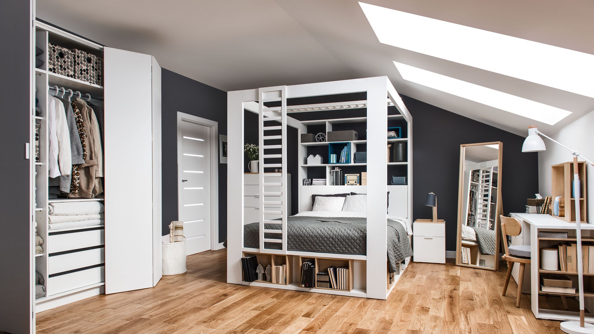 To idealna przestrzeń nie tylko dla marzycieli, ale również miłośników praktycznych i wygodnych rozwiązań. Wybierając sprytnie zaprojektowane, wielofunkcyjne meble będziemy mogli cieszyć się dobrą organizacją na co dzień i szybko zapomnimy, że niewielka przestrzeń czy skosy kiedykolwiek mogły stanowić wyzwanie.