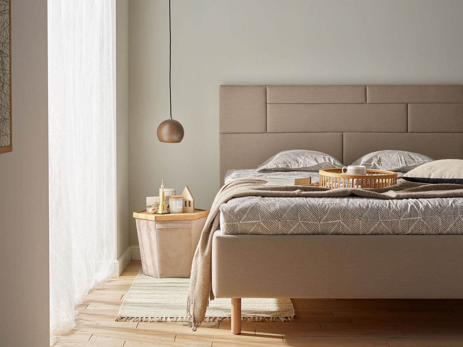 3. OTULENIE DLA ZMYSŁÓW – BEŻOWA SYPIALNIA Z ŁÓŻKIEM TAPICEROWANYM
