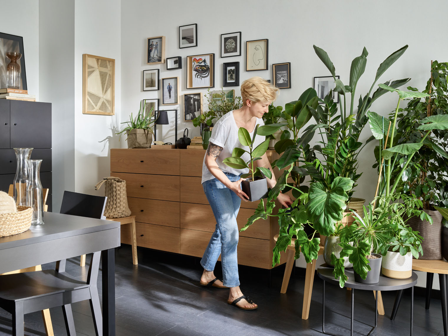 Zebranie roślin przy jednej ścianie to nie tylko efektowny zabieg wizualny, ale również krok ku posiadaniu wyjątkowo zdrowej kolekcji. Wilgotność powietrza w takim zakątku będzie bowiem wyższa, a tym samym rośliny będą lepiej się rozwijać. Pamiętajmy przy tym, aby regularnie przyglądać się ich liściom i korzeniom. Ewentualne szkodniki mogłyby szybko przemieścić się pomiędzy sąsiadującymi okazami.