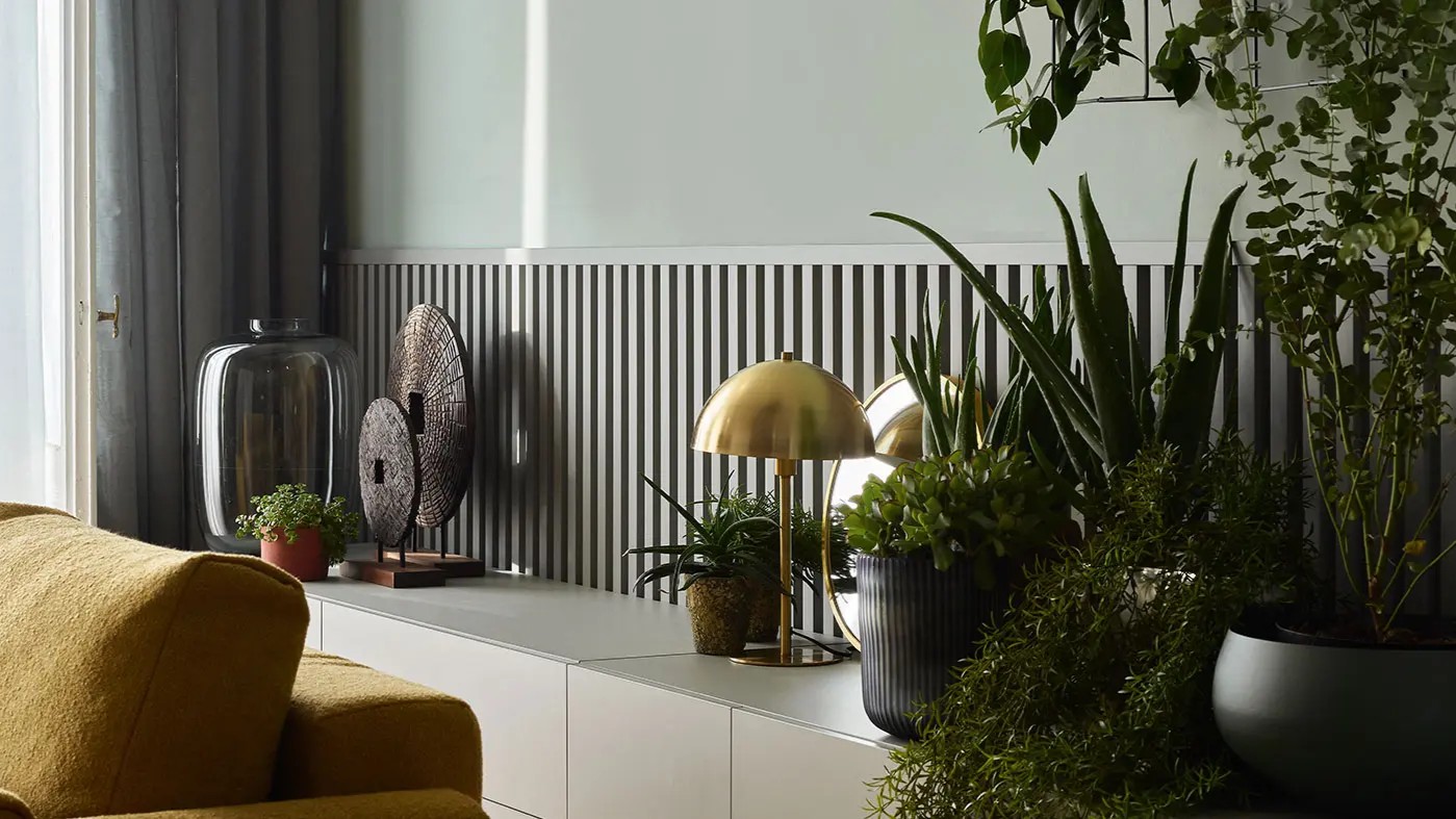 Gustownym dodatkiem do miejskiej dżungli będą również lamele Linerio z drewnianym dekorem. Doskonale wyznaczą one strefę przeznaczoną na domowy ogród w mieszkaniu. Uzyskać oryginalne tło pozwolą z kolei panele Kerradeco z kamiennym deseniem. Odporne na wilgoć i łatwe w czyszczeniu, świetnie zniosą regularne zraszanie zielonych towarzyszy. W zestawieniu z nimi będą przywodzić na myśl mur naturalnie obrośnięty pnączem.