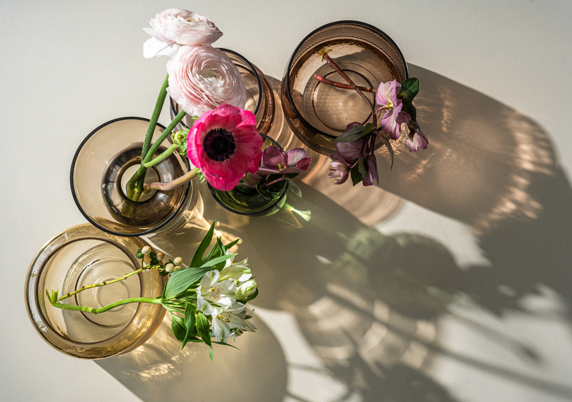 Dekoracyjne wazony do salonu już same stanowią interesującą ozdobę. Często wcale nie potrzeba dodatkowych akcesoriów, by pięknie się prezentowały. W takiej roli sprawdzą się modele wykonane z barwionego szkła – zarówno te o idealnie gładkiej powierzchni, jak i z widocznymi ryflowaniami. Dobrym przykładem będą wazony Bruni, Aura czy Eclipse. Bez obaw możemy łączyć je w unikalne kompozycje lub prezentować jako pojedyncze elementy dekoracyjne. Ciekawym sposobem na ekspozycję jest ustawienie ich na tacy lub podstawce. Możemy wybrać dla nich miejsce na blacie stołu lub wierzchu komody.