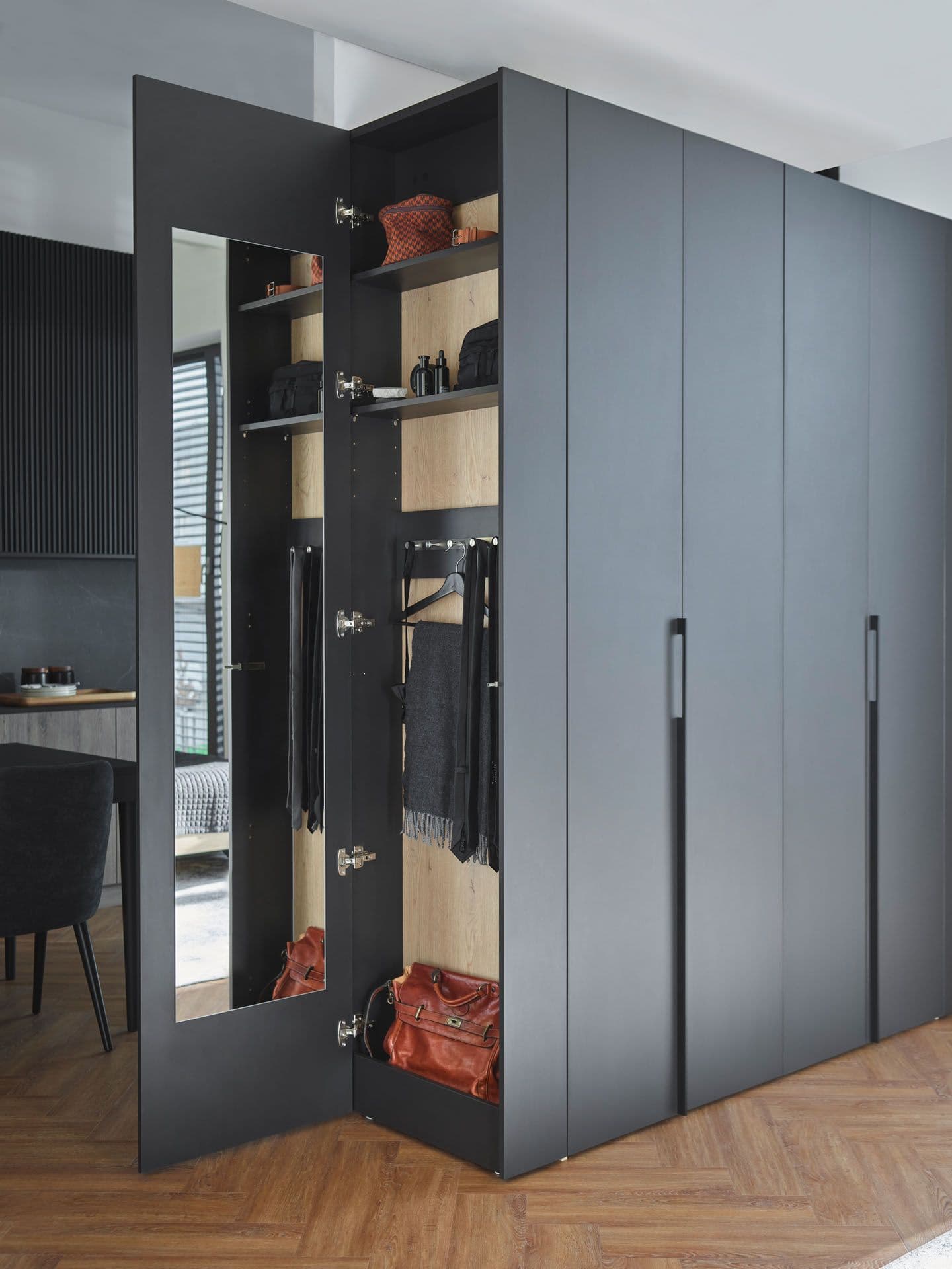 Dobrym pomysłem jest również zastosowanie w swojej sypialni luster oraz przeszkleń, które odbijając światło, optycznie powiększą przestrzeń. Lustra mogą pojawić się w formie wolnostojących dekoracji, a efektowne przeszklenia – jako element frontów meblowych, np. w szafach z kolekcji Creative. Szklane drzwi pozwolą wyeksponować ulubione elementy garderoby i dodadzą wnętrzu lekkości.