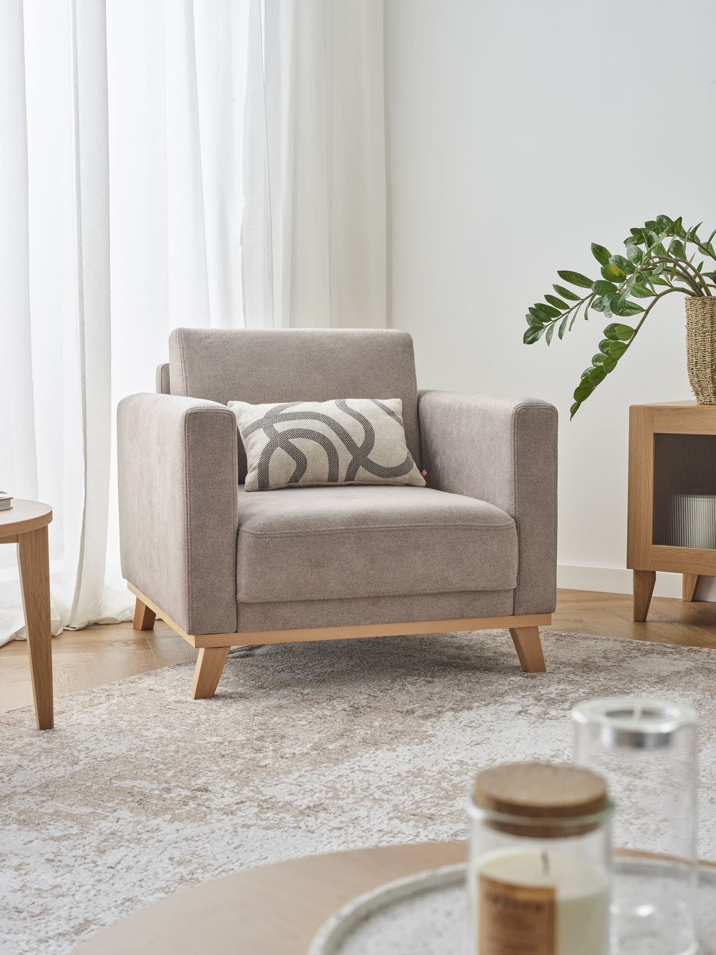 Aby wpuścić do wnętrza jak najwięcej naturalnego światła, zdejmijmy ciężkie zasłony i zastąpmy je zwiewnymi firanami. W strategicznych miejscach umieśćmy lustra, które odbijając światło, potęgują wrażenie przestronności. Przez kanapę przerzućmy ciepły pled z bawełny organicznej, któremu będą towarzyszyć miękkie poduszki, zachęcające do relaksu. Jeśli pod stopami położymy tkany dywan w jasnym kolorze, wnętrze zyska przytulność i wizualną spójność.