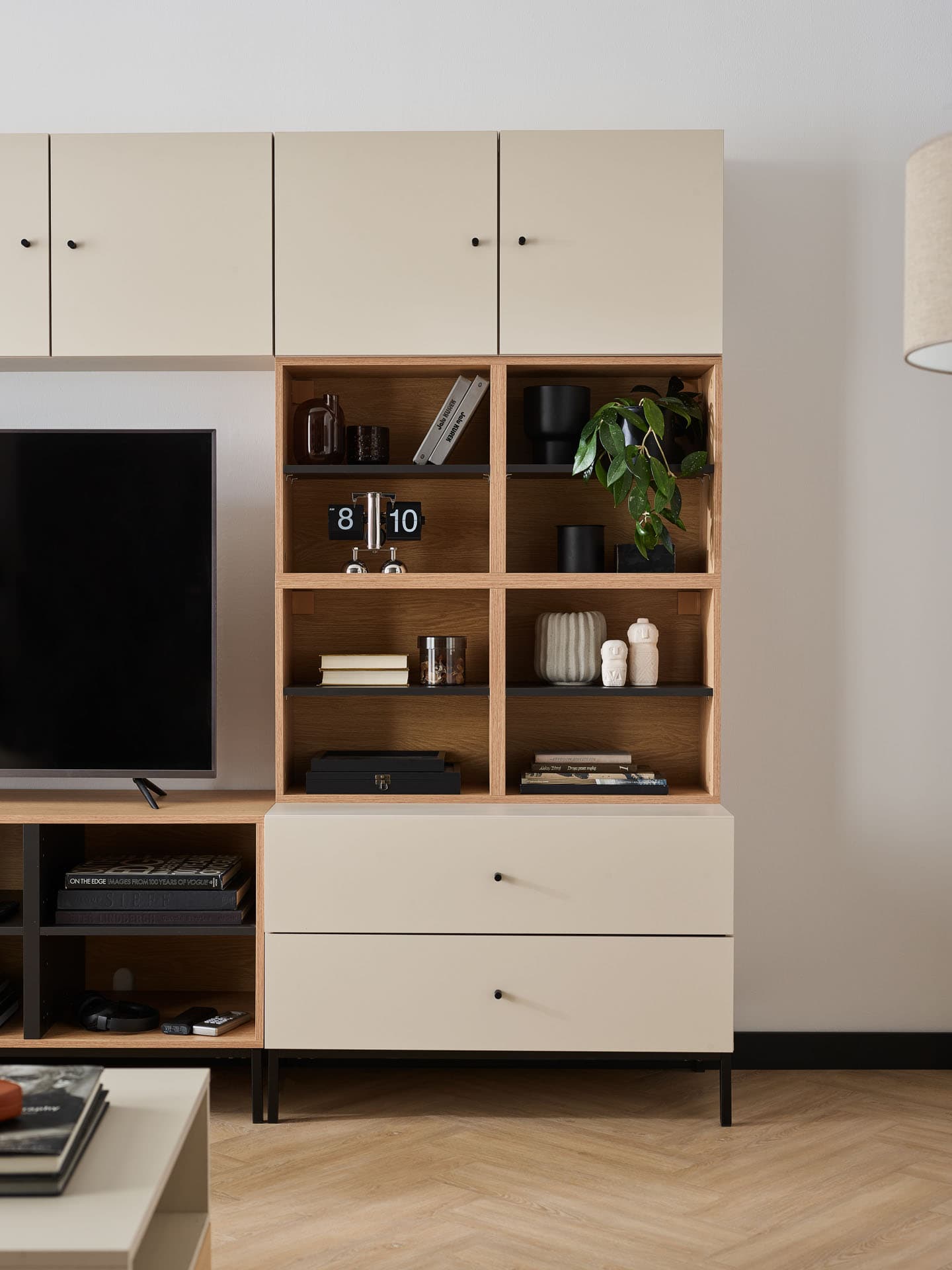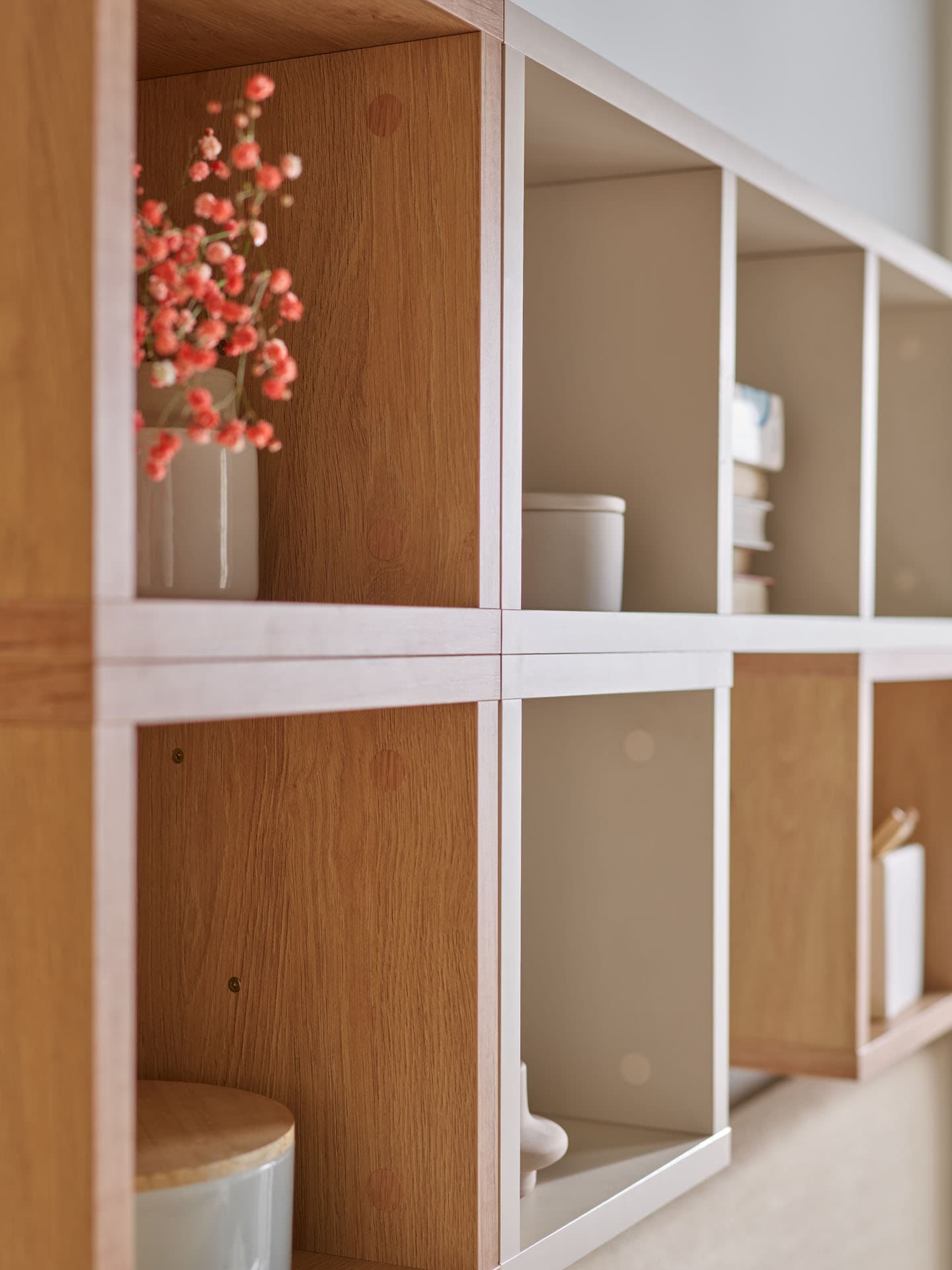 Mnogość inspiracji, jeśli chodzi o półki na ścianę, jest niemal nieograniczona. Mogą one, jak te z kolekcji Well, wyróżniać się dodatkowo rzeźbiarską formą, dzięki czemu stanowią estetyczną dekorację ścienną również w reprezentacyjnych wnętrzach. Dwukolorowe półki sprawdzą się także w prywatnych azylach, pomagając wydobyć indywidualny charakter lokatora. Mogą pełnić wiele ról – od wiszących kostek po stojące na podłodze szafki.