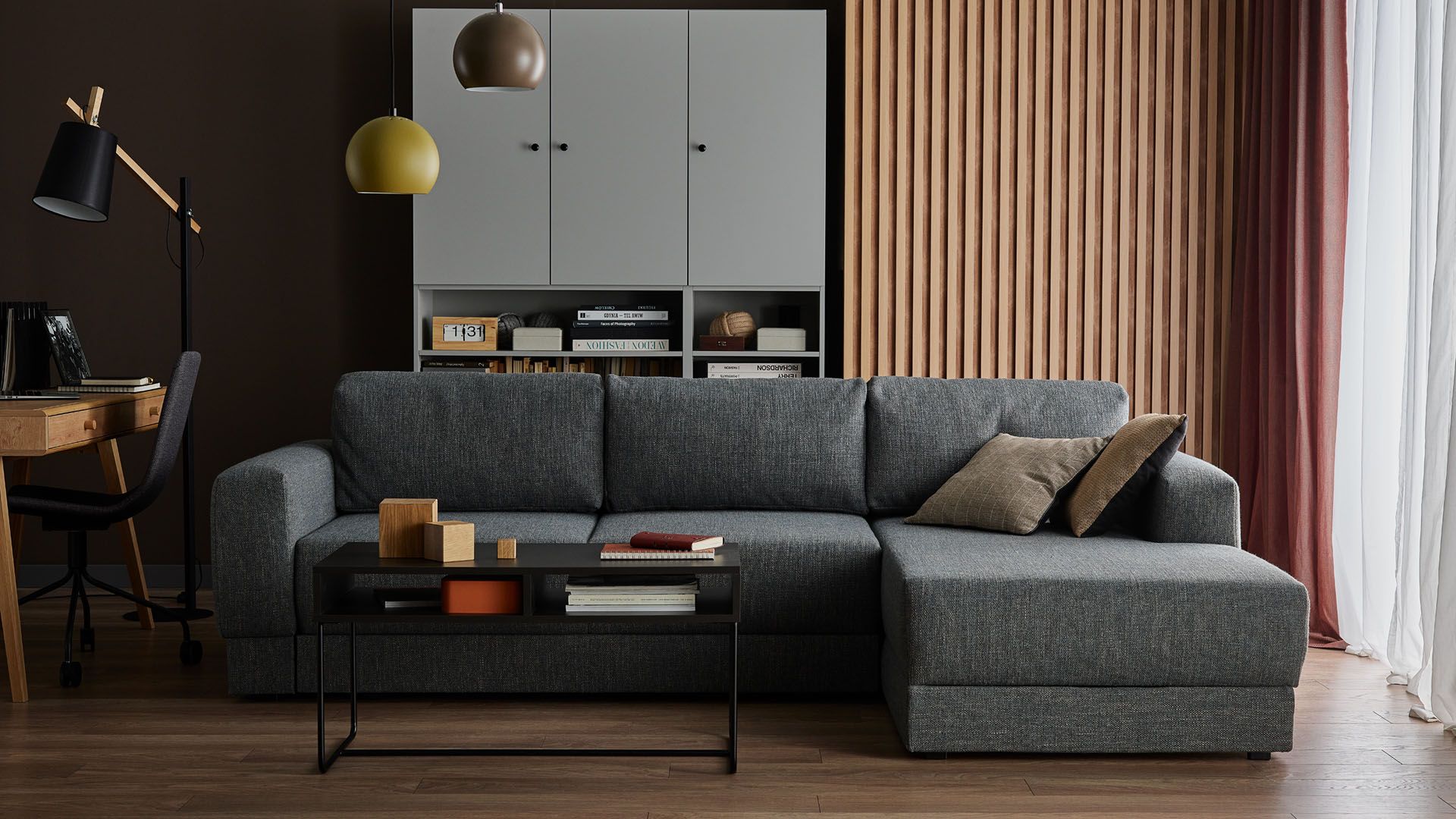 Przechowywanie codziennie używanych tekstyliów ułatwią nam również lekkie organizery, które w razie potrzeby przeniesiemy do pokoju dziecka czy sypialni. Gratką dla prawdziwych zmarzluchów będą jednak akcesoria, którymi można uzupełnić moduły Conffi. Metalowy kosz bez trudu pomieści wełniany pled, a towarzyszący mu drewniany blat posłuży do odstawienia kubka gorącej herbaty.