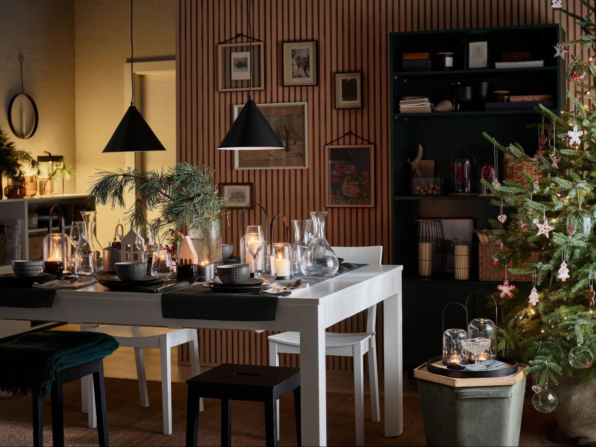 Rozkładany stół, podobnie jak podłoga, może stać się małą manufakturą do tworzenia świątecznych dekoracji. Papierowe łańcuchy, świerkowe stroiki, suszone cytrusy – skorzystajmy z tego, co mamy, by zbudować świąteczny wystrój domu. Przyniesione ze spaceru gałązki jarzębiny mogą zamieszkać w szklanych zawieszkach, a następnie zostać wyeksponowane na choince. Dekorujmy dom spokojnie i bez pośpiechu. Choć lubimy, aby na święta wszystko było dopięte na ostatni guzik, pamiętajmy, że najważniejsi jesteśmy my i nasi bliscy.