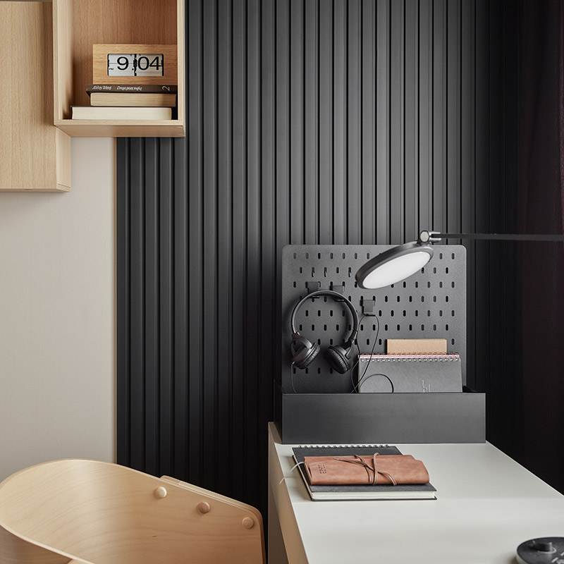 Rozmaite ładowarki czy przewody mogą stać się integralną częścią aranżacji i dodawać jej charakteru. Takie gadżety warto wyeksponować zwłaszcza w pokoju młodzieżowym lub gamingowym, wykorzystując ekspozytor Young Users. Dwustronny organizer posiada pojemną skrzynkę oraz tablicę z otworami i haczykami, na których z łatwością przywiesimy kabel USB, słuchawki czy pada od konsoli.