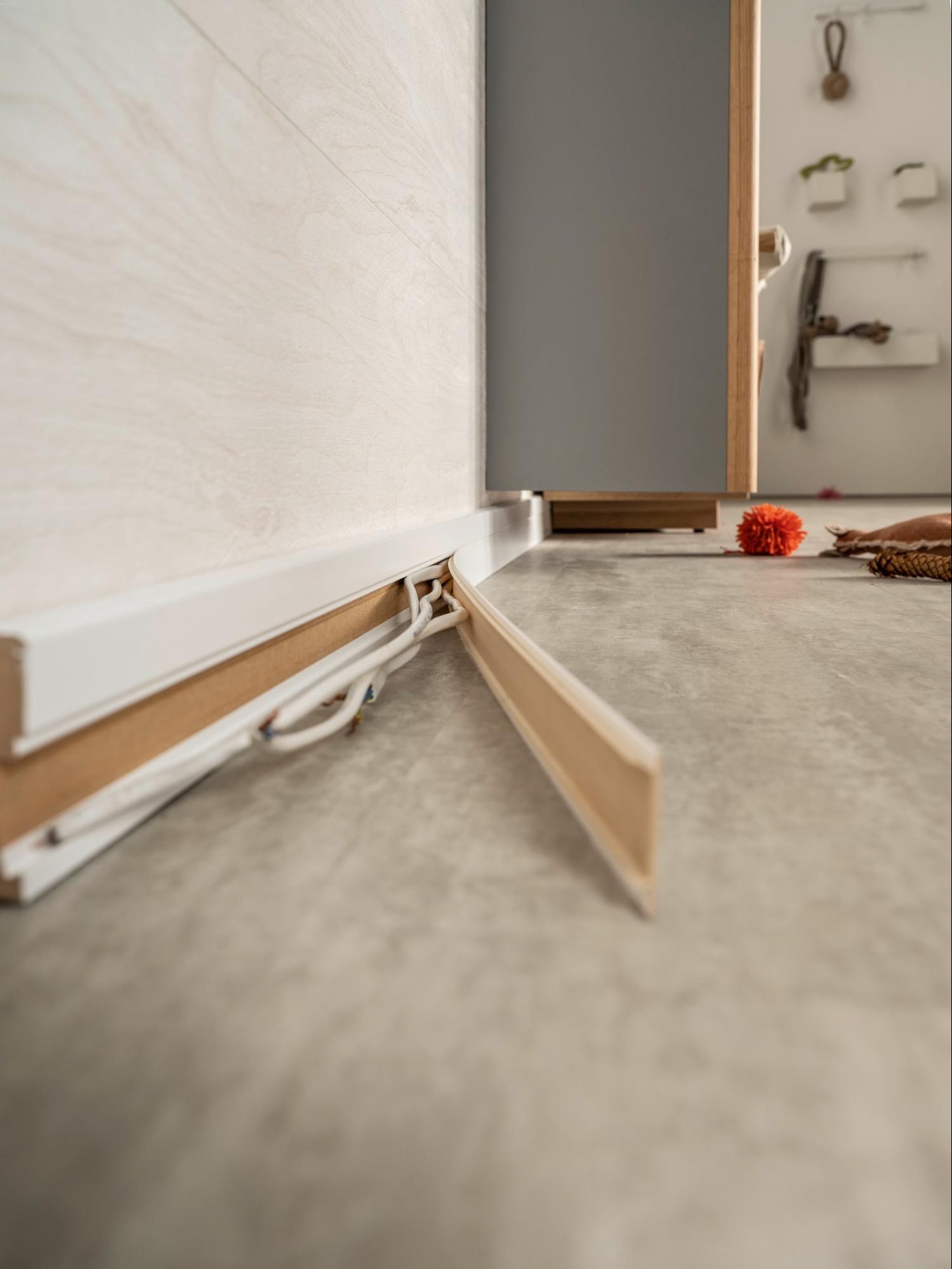 Ciągnące się przez całe pomieszczenia przewody zasilające to zmora wielu domów i mieszkań. Jak sobie z nimi poradzić? Przydatnym rozwiązaniem będą listwy przypodłogowe Estilo, które nie tylko estetycznie wykończą panele czy parkiet, ale pomogą też w przeprowadzeniu kabli. Wszystko dzięki specjalnej komorze, do której możemy włożyć biegnące przewody, a potem ukryć je, zakładając dedykowaną maskownicę. Zaprocentuje to zarówno uporządkowaniem przestrzeni, jak i większym bezpieczeństwem. Ukryte kable na podłodze docenią zwłaszcza rodzice i właściciele czworonogów.