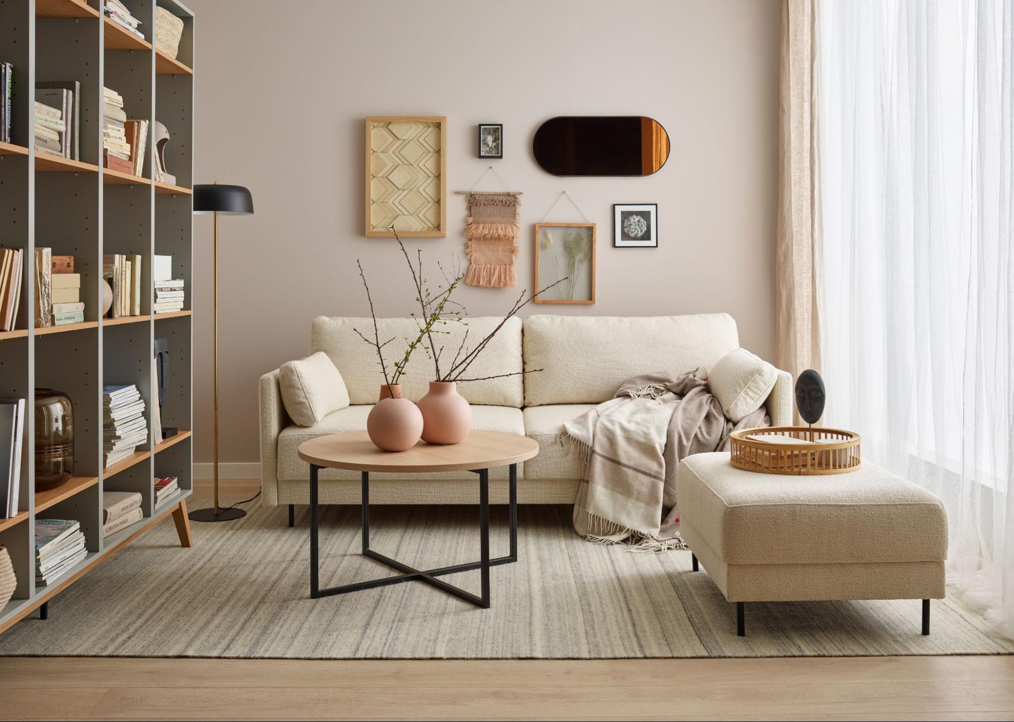 Wystrój salonu podkreślą obrazy, które dodadzą wnętrzu jeszcze więcej ciepła. Proste formy zrównoważą łagodne zaoblenia ceramicznych wazonów w organicznych kształtach. Razem z kwiatami lub pojedynczymi gałązkami roślin pomogą zaprosić do naszego eleganckiego salonu kilka drobnych, urokliwych akcentów.