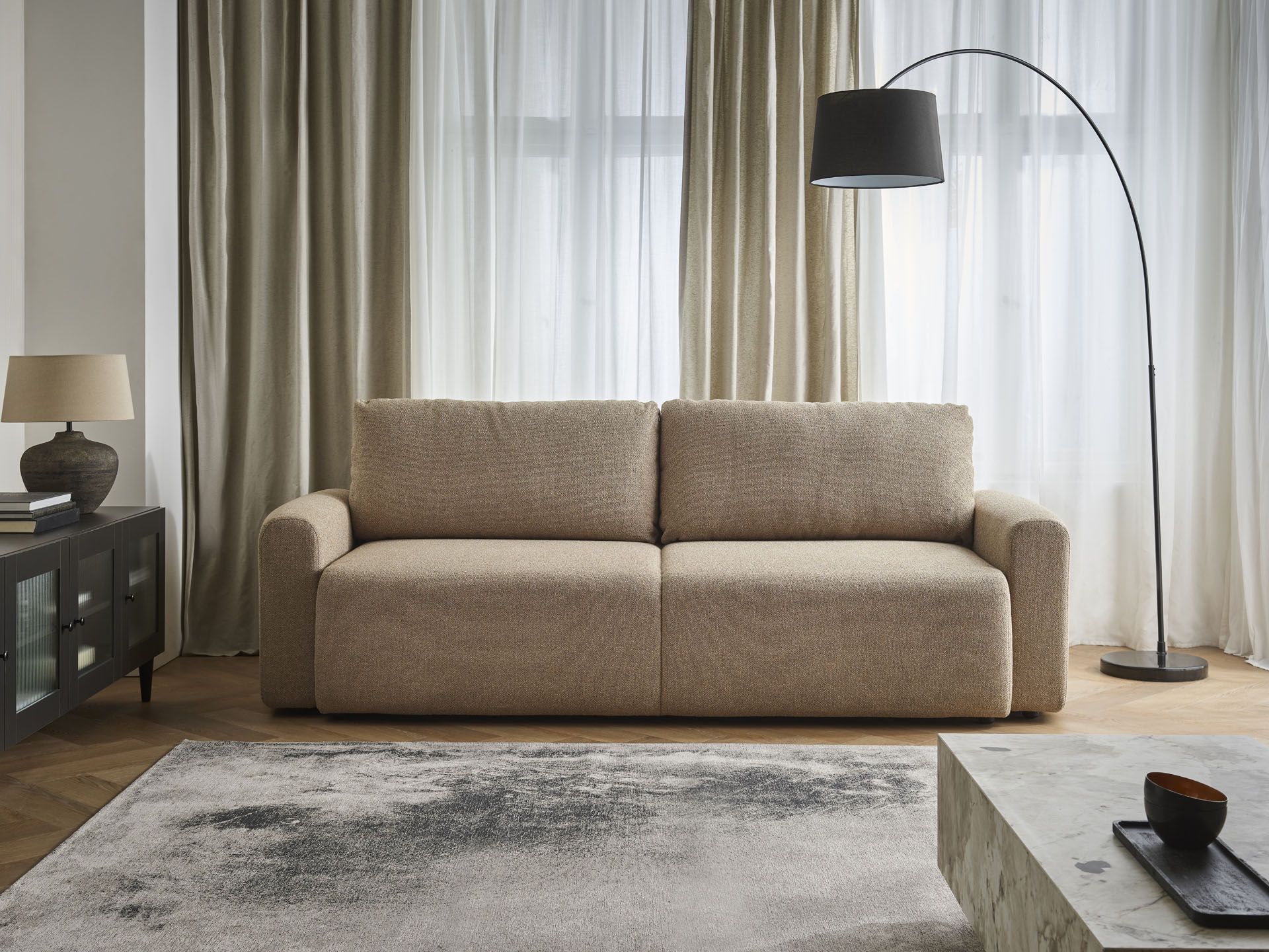 Wbrew pozorom, elegancja może iść w parze z praktycznością. Jeśli wybierzemy moduły Conffi, będziemy mogli wykorzystać je również do nocnego wypoczynku. Z łatwością je rozłożymy, a ukryte pod siedziskami pojemniki wykorzystamy do przechowania tekstyliów. To właśnie przyjemne pledy i miękkie poduszki pozwolą nam zbudować przytulną atmosferę w eleganckim salonie.