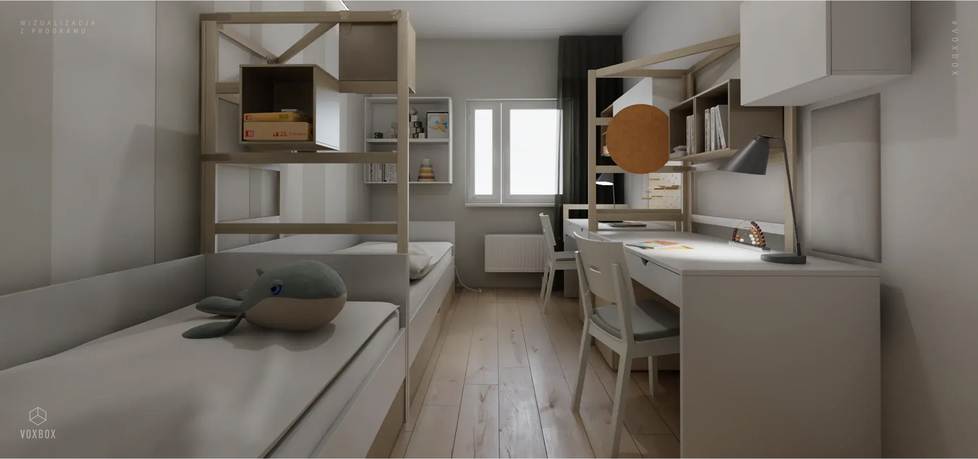 Więcej pomysłów na pokój dla 3 dzieci (np. dwóch chłopców i jednej dziewczynki) znajdziesz w bibliotece gotowych projektów VOX.