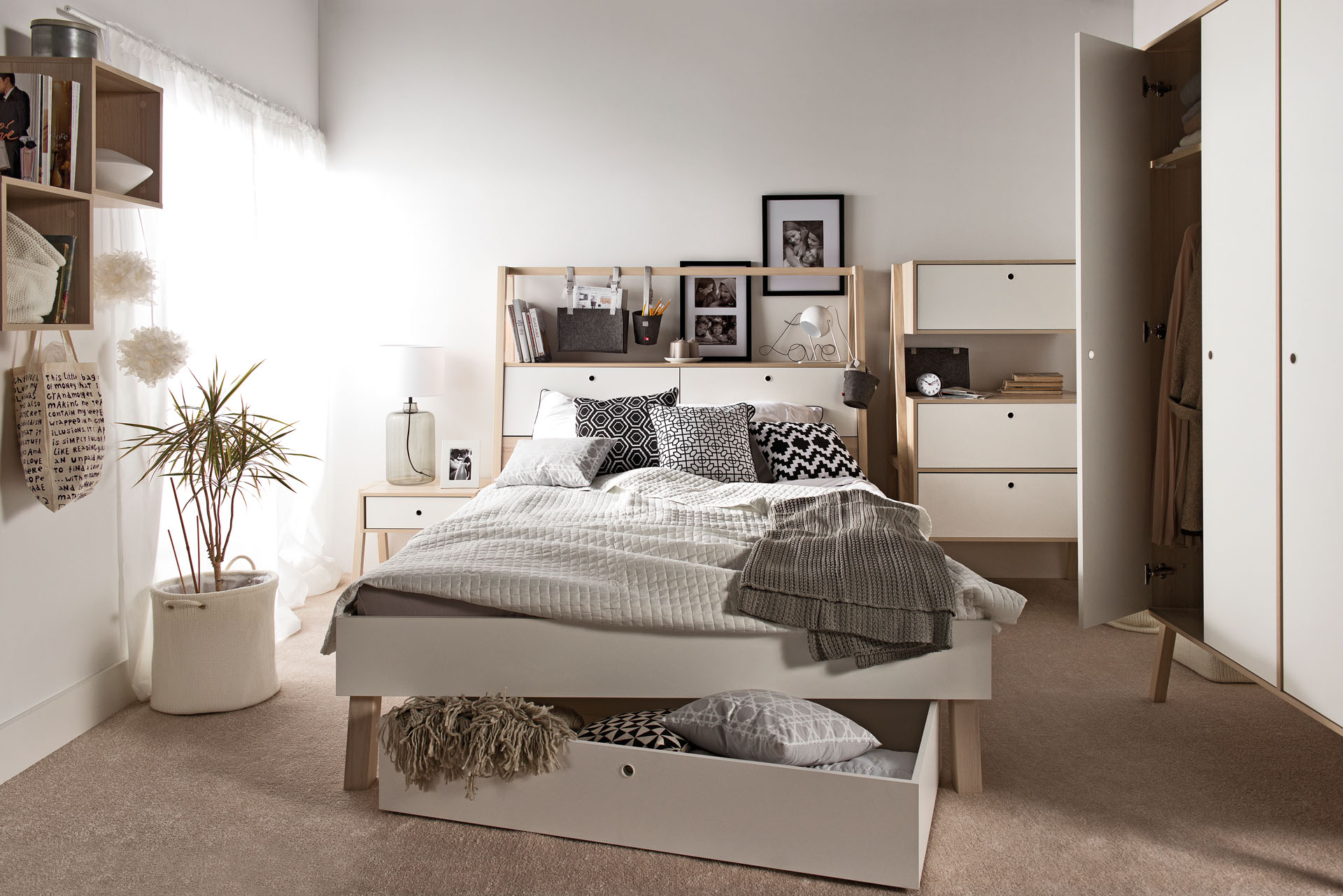 Warto tak urządzić swoją sypialnię, aby wyeliminować konieczność podnoszenia się z wygodnego materaca po potrzebną rzecz. Dobrym pomysłem może być wybór sprytnego łóżka z wbudowaną półką na drobiazgi i relingiem, na którym możemy zawiesić praktyczny przybornik lub sezonowe dekoracje. To szczególnie interesujące rozwiązanie do niewielkiego wnętrza, gdyż taki mebel zastąpi oddzielną szafkę nocną. Podobnym ułatwieniem będzie łóżko 4 You z funkcjonalnymi wnękami w dolnej ramie, które są idealnym miejscem na książki i małe organizery. Z takim miejscem do spania nie trzeba już martwić się o wolną przestrzeń na dodatkowy regał.