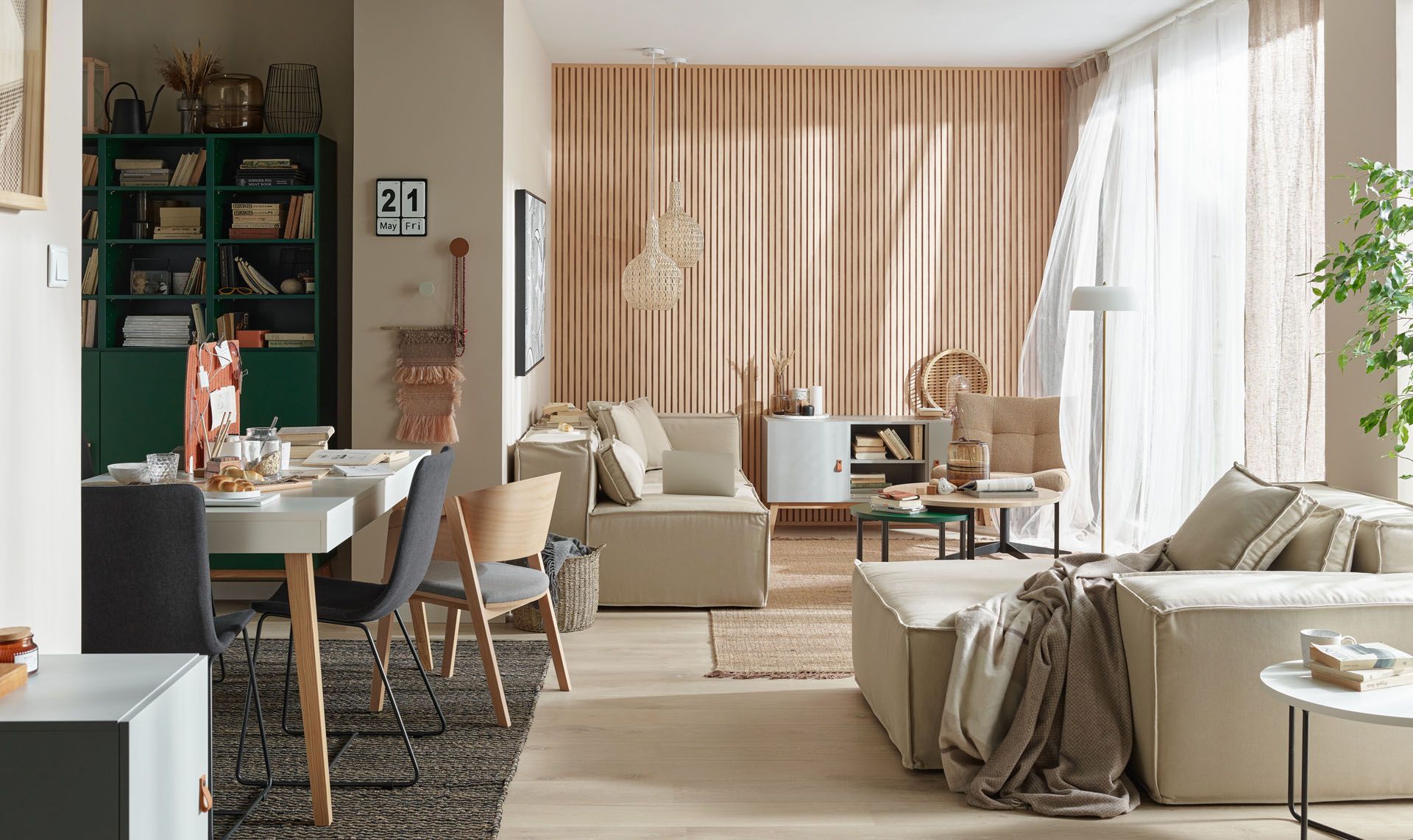 Sensoryczne doznania warto uwzględnić również przy doborze mebli. O ile skórzana kanapa może wydawać się chłodna i nieprzyjazna, o tyle tapicerowana sofa Slide będzie skłaniać do popołudniowej drzemki w ciepłej poświacie zachodzącego słońca. Przytulność salonu zwiększymy, dobierając pled Solv zakończony frędzlami oraz dzianinowe poduszki Cleo z trójwymiarowym wzorem. Zapasowe koce przechowamy w koszu Aria, który będzie stanowić praktyczną ozdobę pomieszczenia.
