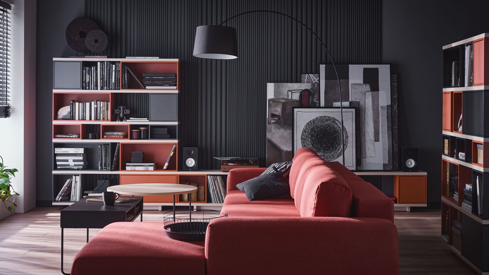 Nawet jeśli w żadnym miejscu nie postawimy ani nie powiesimy telewizora, nie musimy rezygnować z przyciągającej wzrok strefy w salonie. Jedną ze ścian pomogą nam wyróżnić obrazy i plakaty w dopasowanych stylistycznie ramkach. Pop-artowa grafika z zabawnym napisem, geometryczna abstrakcja, eleganckie liście – możliwości są nieskończone. Świetnym uzupełnieniem domowej galerii będzie wisząca półka Ribbon, czyli idealna baza dla osobistych drobiazgów i pamiątek z wakacji. Kontrastowe połączenie dębowego i szarego dekoru może zainspirować nas do doboru pozostałego wyposażenia wnętrza.