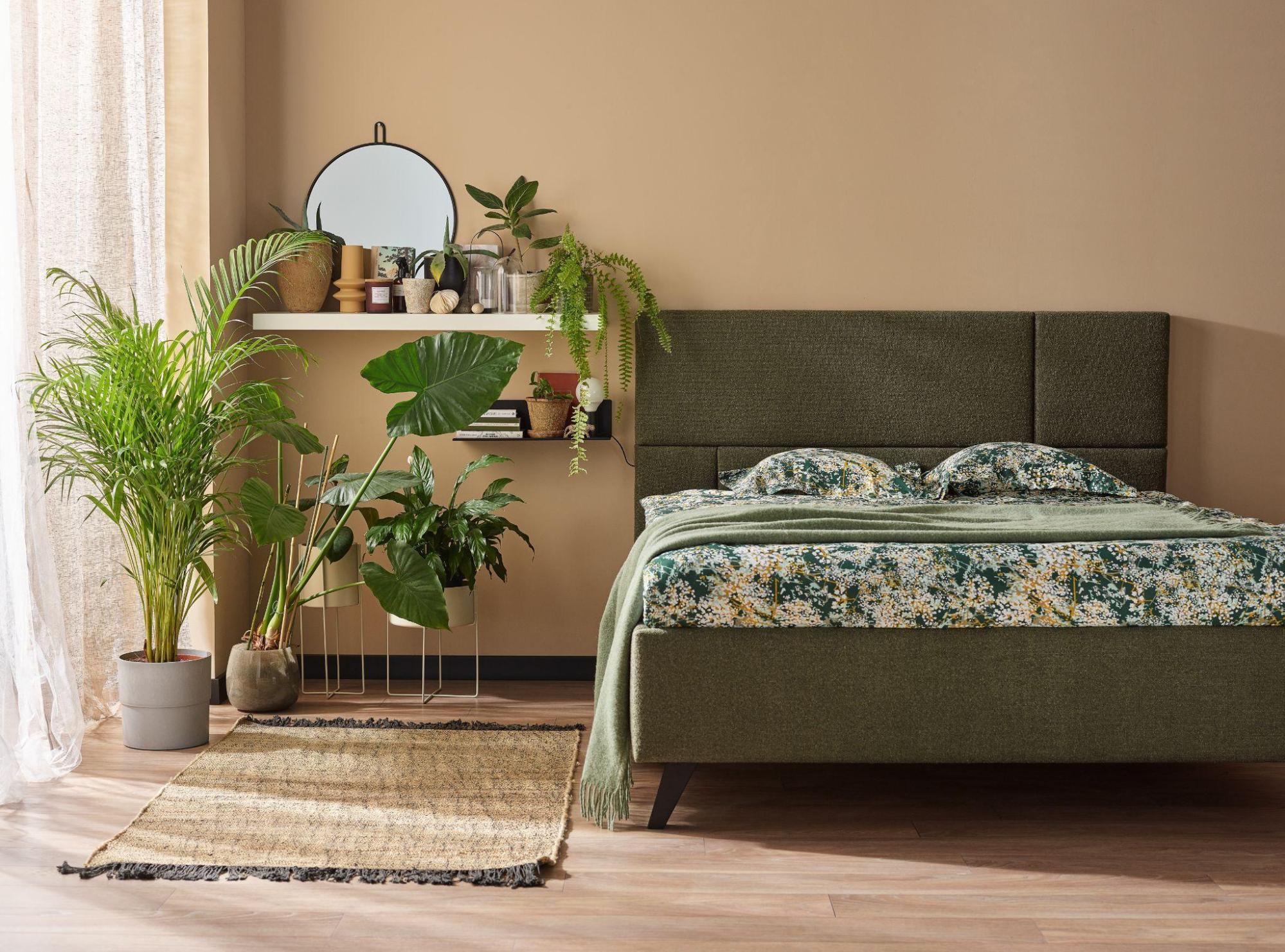 Gdy nie ogranicza nas przestrzeń, warto przeznaczyć miejsce na wyeksponowanie zielonych roślin. Te ulokowane blisko łóżka nie tylko pomogą oczyścić i nawilżyć powietrze, ale też będą stanowić barwny akcent dekoracyjny. W zależności od naszych upodobań możemy umieścić je na specjalnych kwietnikach, komodzie czy po prostu zawiesić przy ścianie.