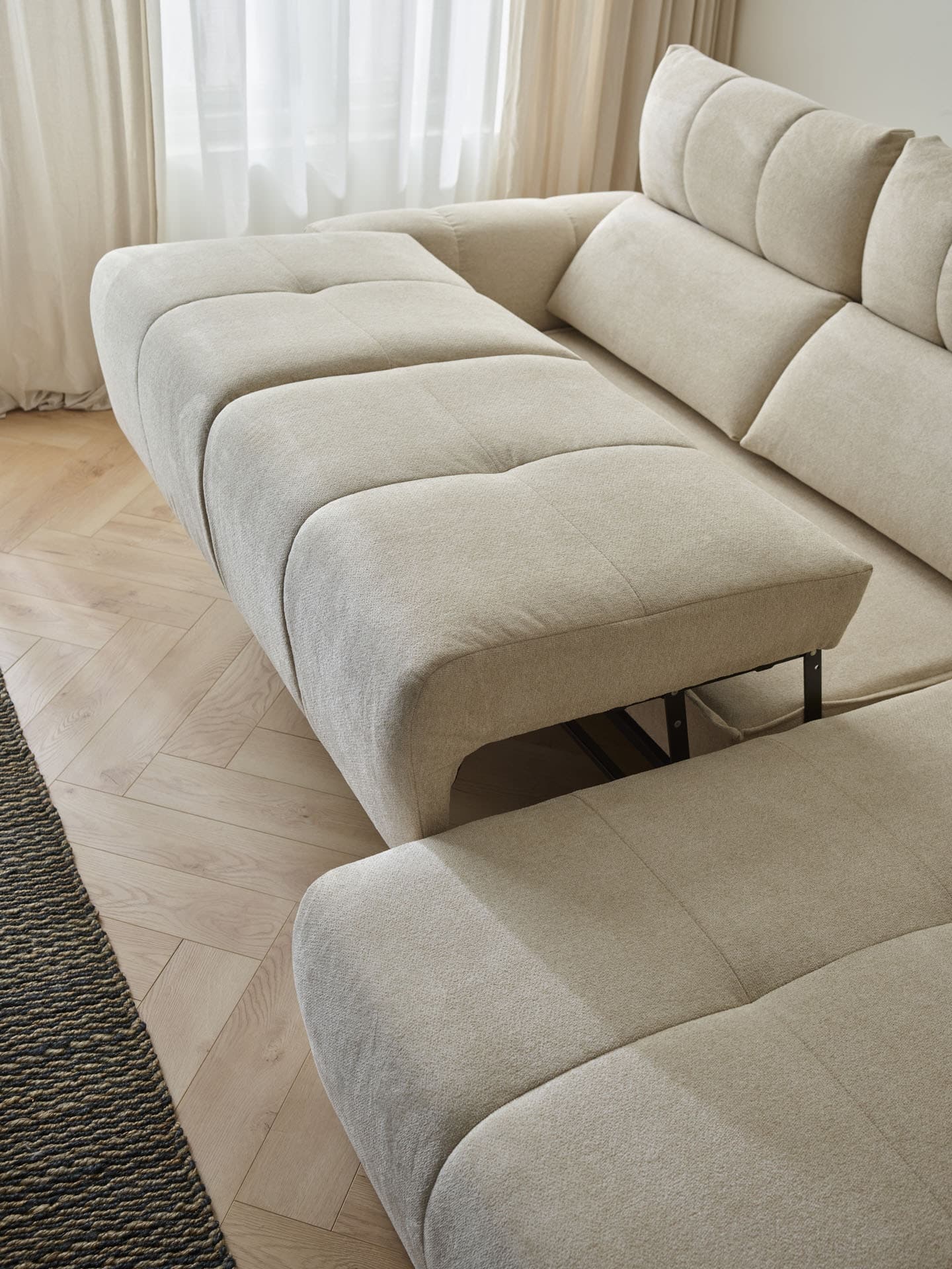 Bardziej nowoczesny narożnik modułowy stworzymy z kolekcją Nui. Meble mają miękkie, organiczne formy i innowacyjne wypełnienia, przez co nie tylko prezentują się bardzo komfortowo, ale również takie są. Dzięki pojedynczym i podwójnym modułom można definiować wielkość układu, a przez to łatwo dopasować zarówno do małego pokoju, jak i większej przestrzeni. Za sprawą elementów dopasowanych do indywidualnych preferencji łatwo uzyskamy optymalne ustawienie narożnika w salonie.