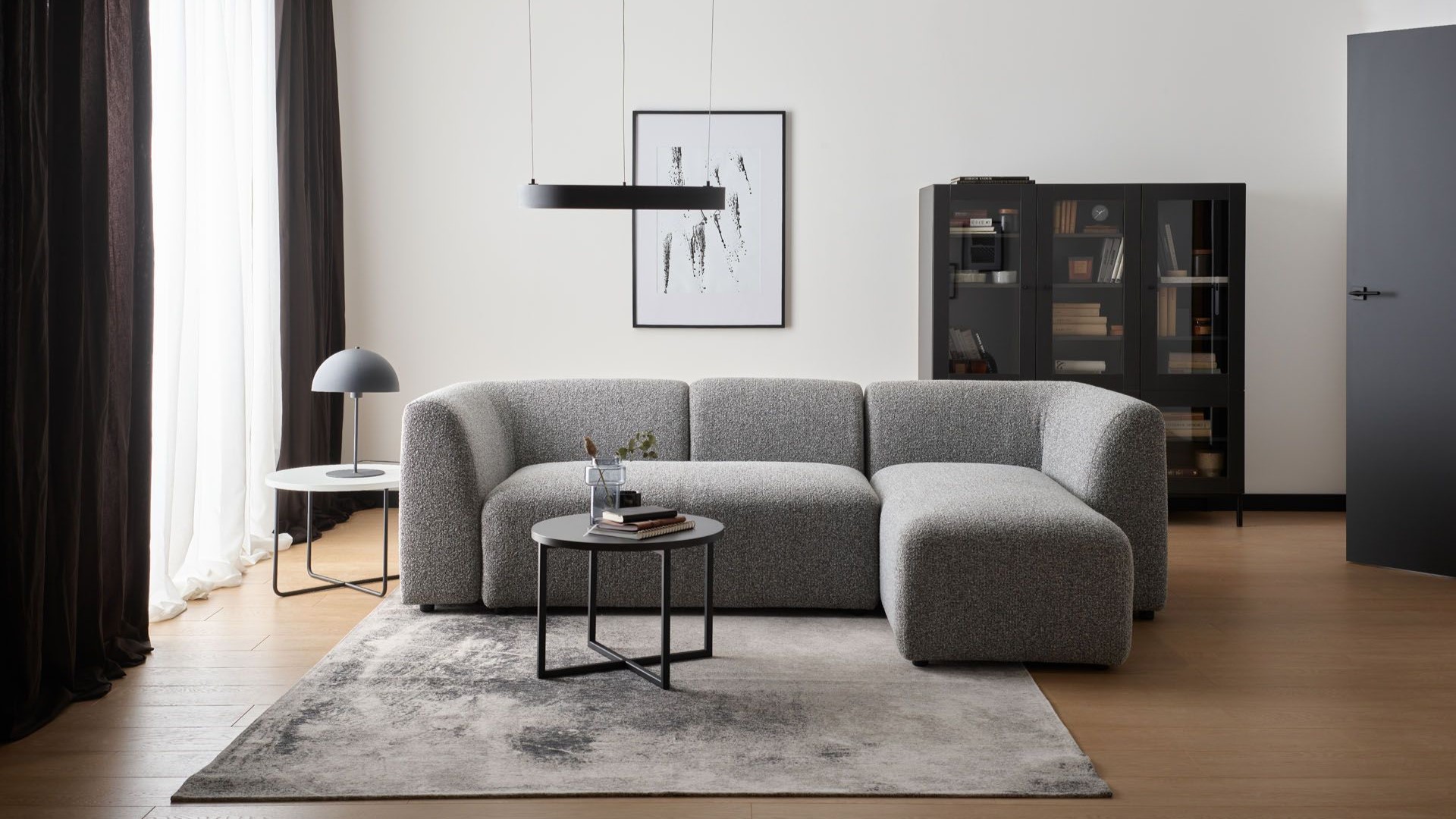 Ciekawym tłem dla ciemnych mebli będą także dekoracyjne panele Kerradeco, dostępne w dziesiątkach wariantów z odpowiednio dopasowanymi teksturami. Drewniany dekor z wyczuwalną fakturą przełamie minimalistyczny charakter grafitowego regału z modułowej kolekcji Balance. Z kolei kamienny wzór o charakterystycznej ziarnistości stworzy zmysłową kompozycję wraz z miękką tapicerką fotela.