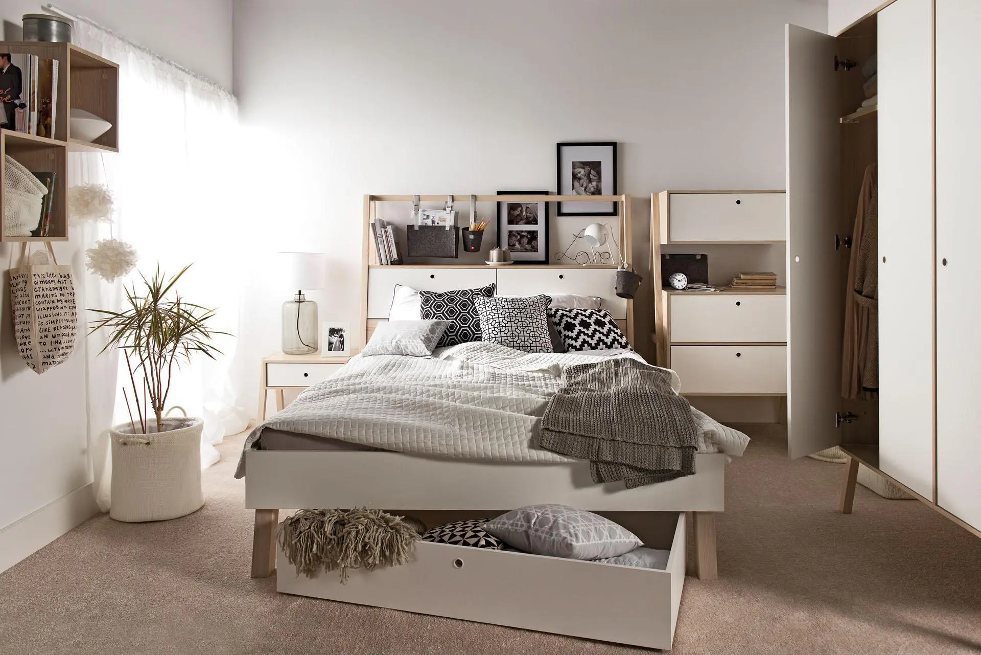Nasz prywatny azyl, do którego zapraszamy wyłącznie najbliższe nam osoby, może być również pełny wspomnień oraz przedmiotów, które mają dla nas osobiste znaczenie. Nic nie stoi zatem na przeszkodzie, aby ścianę udekorować zdjęciami członków rodziny lub też oprawić w ramkę skrawek materiału czy też fragment ważnego dla nas listu. Do wyeksponowania oprawionych drobiazgów przyda się regał przy łóżku 4 You Fresh z baldachimem.
