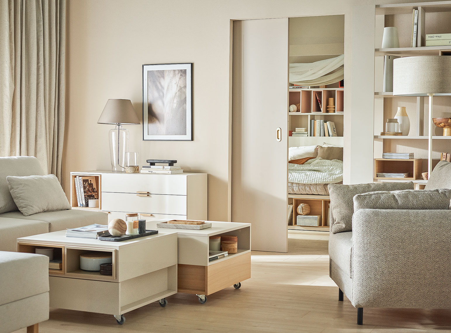 Drzwi przesuwne są na tyle uniwersalne, że sprawdzą się niemal w każdym pomieszczeniu. Również tam, gdzie ze względu na brak miejsca nie możemy pozwolić sobie na montaż tradycyjnie otwieranych skrzydeł. Jeśli ukryjemy konstrukcję w ścianie, po rozsunięciu drzwi będą całkowicie niewidoczne. Przestrzeń wyda się więc większa, a światło będzie mogło swobodnie przenikać.