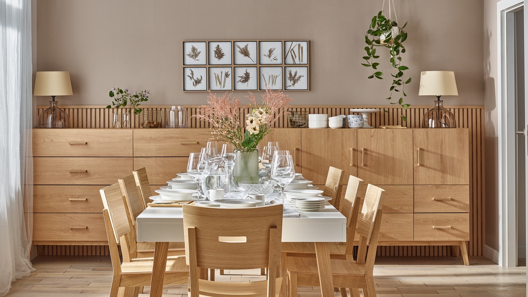 Dąb to prawdziwy kameleon wśród gatunków drewna. W zależności od wybarwienia, może grać główną rolę lub stanowić subtelne tło dla innych elementów wystroju. Jak stworzyć słoneczny salon w skandynawskim stylu? Postawmy na meble Nature w kolorze jasnego dębu i połączmy je z bielą, odcieniami szarości i naturalnymi tkaninami.