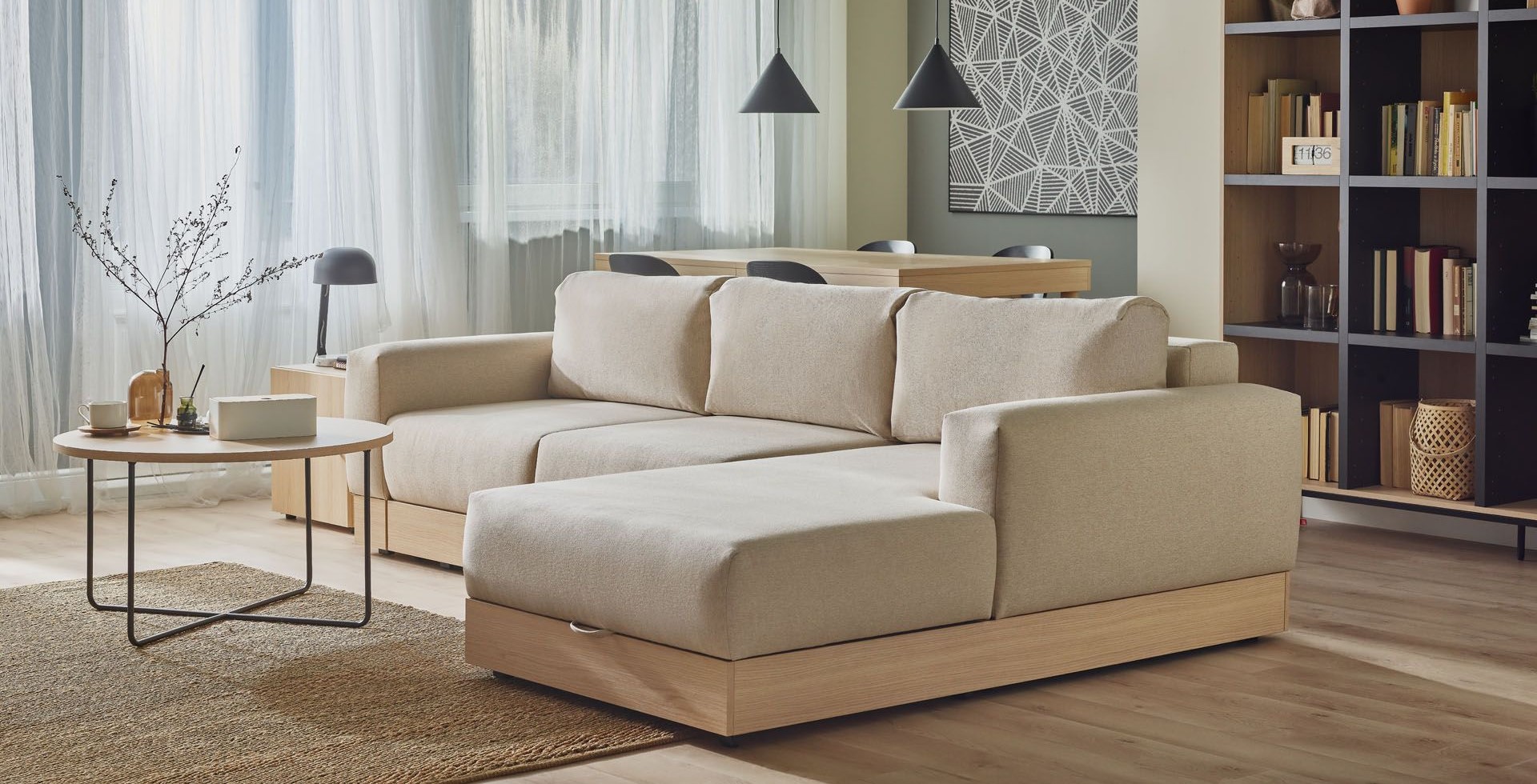 W każdym salonie strefa wypoczynkowa odgrywa bardzo ważną rolę. W zależności od tego, jak lubimy spędzać wolny czas, możemy wybrać tradycyjną kanapę lub komfortowe fotele, które pozwolą zachować dystans podczas ulubionych rozrywek. W rodzinnym salonie świetnie sprawdzi się miękka sofa Estar obita jasną tkaniną, którą łatwo utrzymać w czystości. Dzięki smukłym podłokietnikom oraz delikatnym czarnym nóżkom prezentuje się wyjątkowo lekko i elegancko. Dodatkowo skrywa praktyczną funkcję spania, dzięki czemu w razie potrzeby może zamienić się w wygodne łóżko dla zaproszonych gości.