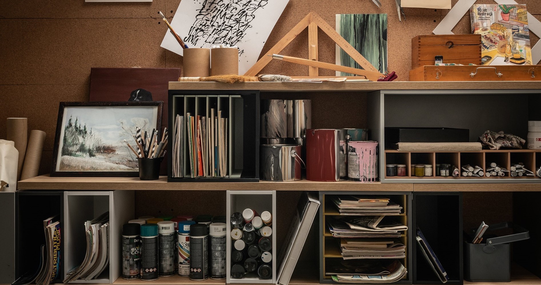 Artystyczne pracownie to często wnętrza bardzo eklektyczne, pozytywnie „zagracone”. W nich każdy, najdrobniejszy nawet element gra istotną rolę – jest ważny z jakiegoś względu, należy mu się specjalne miejsce i towarzystwo. Pojawia się wtedy potrzeba utrzymania porządku w bardzo określony sposób, często trudny do zrozumienia dla kogoś poza właścicielem. Sprzęty, które mają sprostać temu niełatwemu zadaniu, muszą uwzględniać indywidualizm użytkowników i ich skłonność do niestandardowego myślenia.