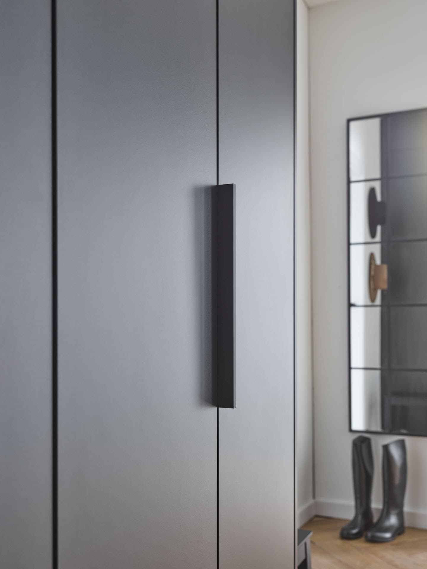 Szafy z kolekcji Stor można elastycznie personalizować – dobierać fronty, uchwyty, kolory, pakiety wyposażenia oraz wymiary. To meble dostępne w dwóch wysokościach (225 i 240 cm) oraz dziesięciu szerokościach do wyboru – od 125, aż do 375 cm, dzięki czemu łatwo dopasujesz je do dostępnej przestrzeni. By maksymalnie wykorzystać potencjał wnętrza, można je wykończyć pomysłową zabudową boczną z dwiema półkami i dużym lustrem. W sprytnym ukryciu szczelin po bokach i u góry pomogą panele maskujące, które można dociąć pod wymiar wnęki.