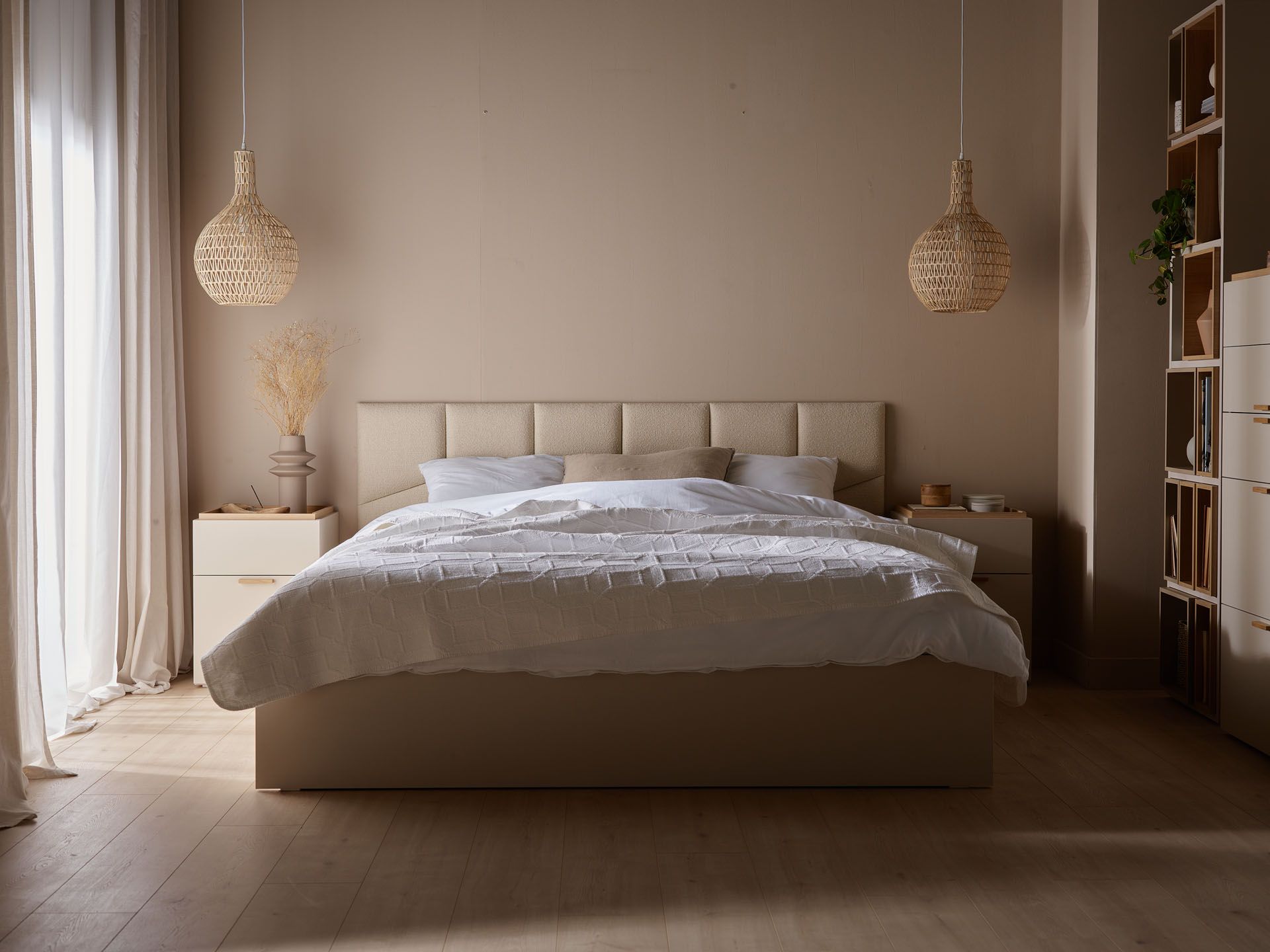 Miłośnicy nieoczywistych rozwiązań mogą zwrócić uwagę na łóżka 4 You Fresh. Te ponadczasowe meble dostępne są w wersji bez wezgłowia, co daje nam pełną swobodę w zakresie aranżacji ściany. Doskonałym uzupełnieniem dla nich będą beżowe panele tapicerowane z wyrazistą fakturą. To idealny duet, który pozwoli stworzyć przytulne i jednocześnie eleganckie wnętrze.