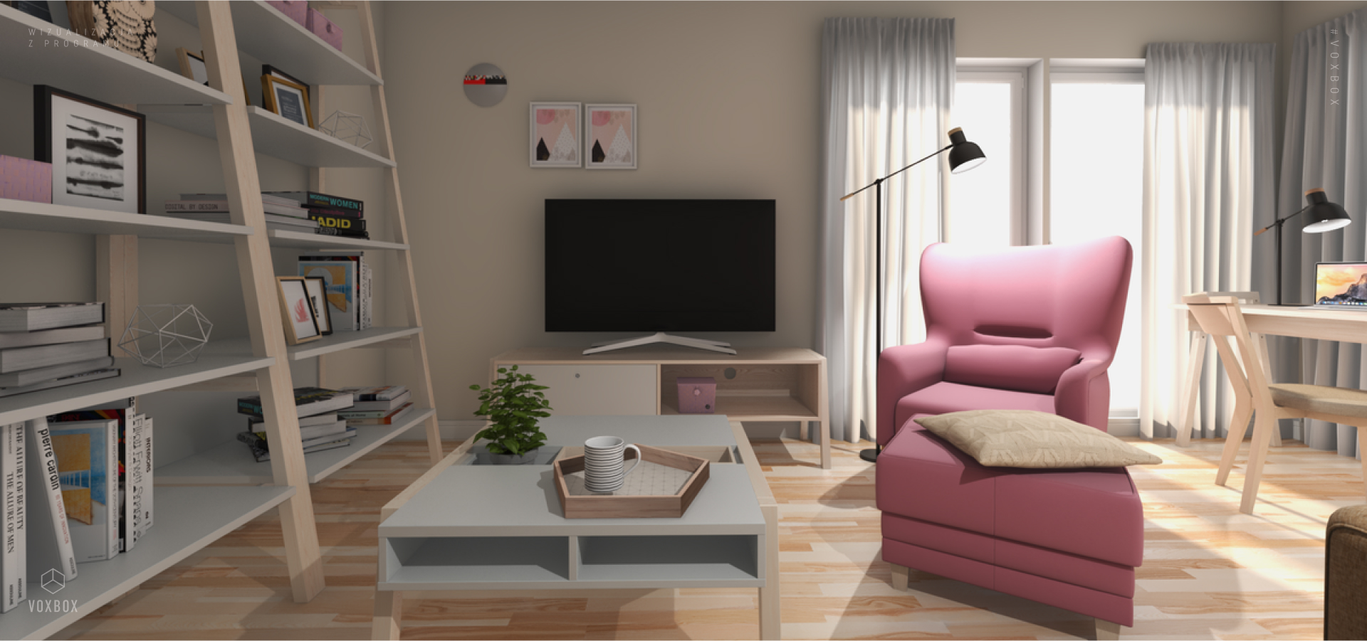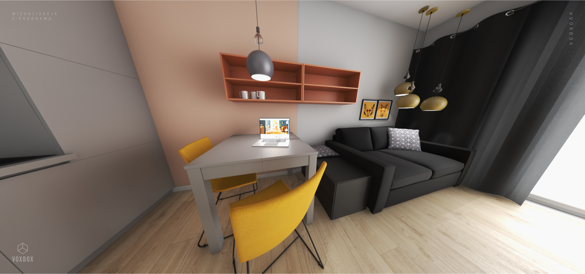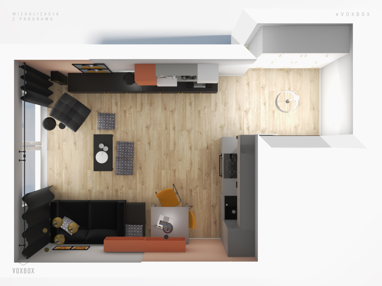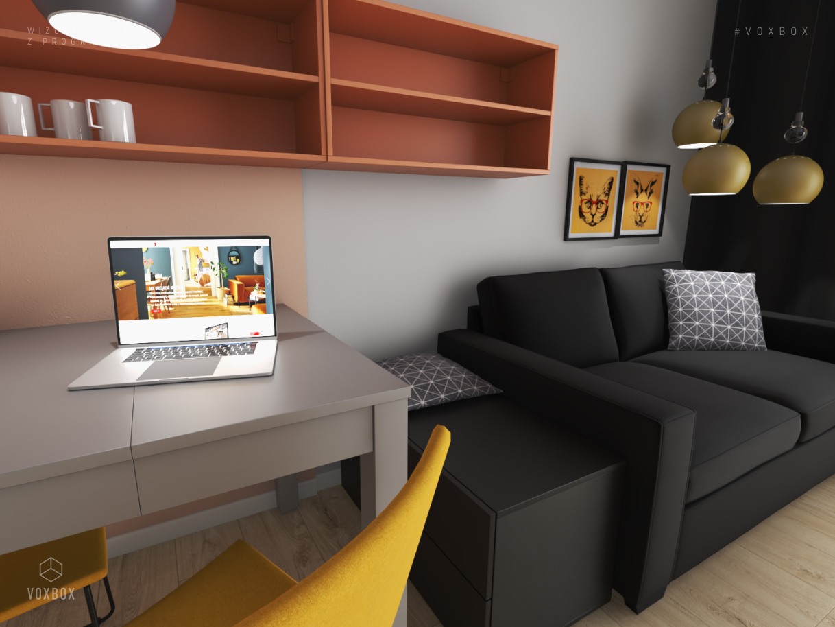 Projektantka VOX przygotowała realistyczną wizualizację za pomocą darmowej aplikacji VOXBOX – dostępnej dla każdego, kto chciałby przetestować różne pomysły na aranżację pomieszczenia. Program jest prosty w obsłudze, dzięki czemu bez trudu można wcielić się w rolę projektanta wnętrz. Aby uzyskać wsparcie specjalisty, wystarczy udać się do najbliższego salonu VOX i skorzystać z bezpłatnej pomocy doradcy.