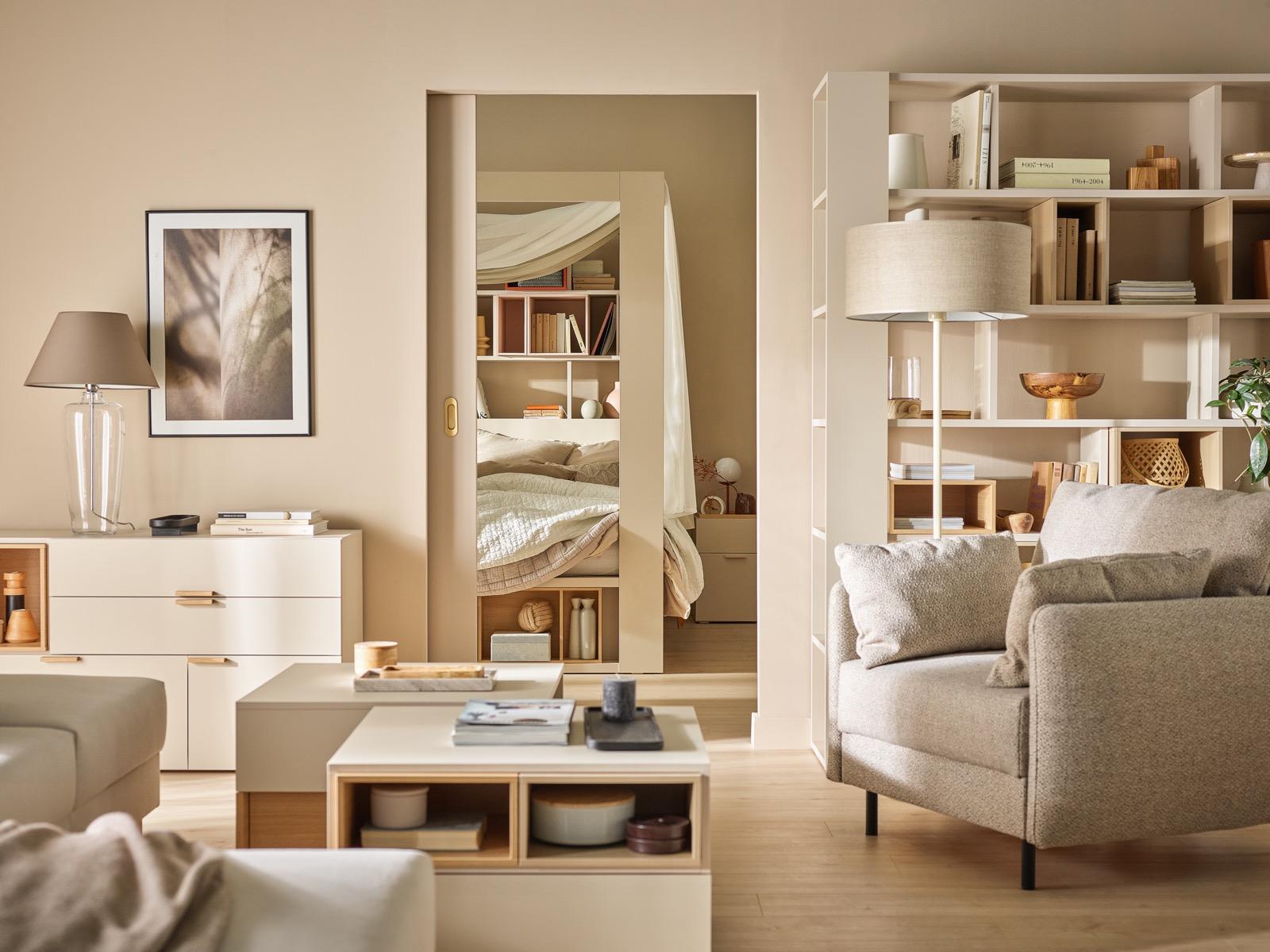 Obszerny regał pełniący rolę ścianki działowej, podświetlane witryny, mobilne stoliki kawowe z wnękami i szufladami czy wreszcie łóżko z baldachimem i masą schowków. Urządzając wnętrze wraz z piaskowobeżową odsłoną bestsellerowej kolekcji 4 You, otrzymamy funkcjonalny zestaw mebli przemyślanych w każdym detalu.