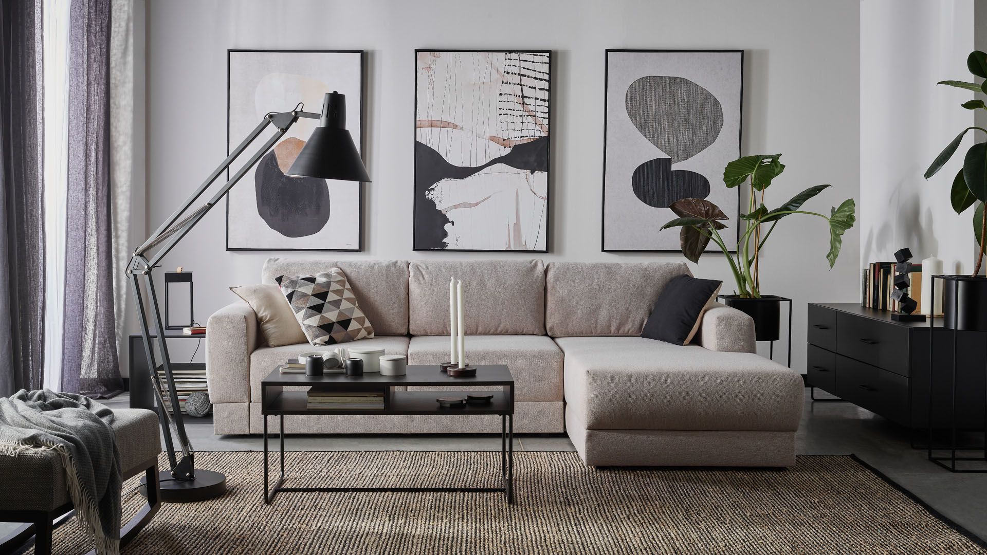 Malunki utrzymane w delikatnych kolorach będą stanowić interesujące dopełnienie salonu, w którym zostały wykorzystane meble Creative z wyróżniającymi się frontami. Wolność w zakresie wykończenia brył, jaką oferuje ten system, pomoże stworzyć harmonijny wystrój wnętrza. Spersonalizowanej komodzie mogą towarzyszyć przemyślane obrazy, które stapiają się z tłem, budując głębię aranżacji.