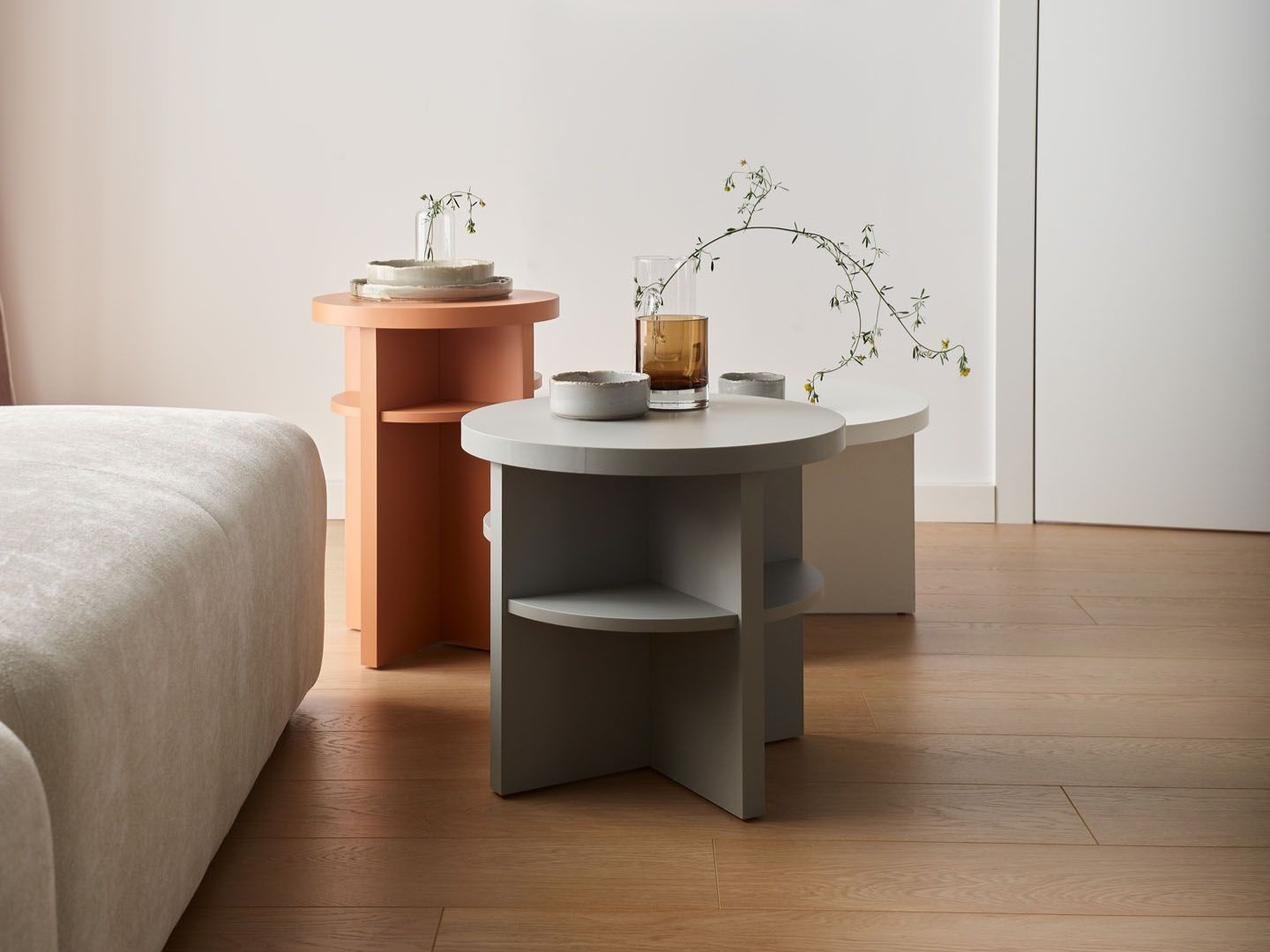 W nowoczesnym salonie świetnie sprawdzi się także stolik Talvo. Prosty, wyrazisty mebel zawiera praktyczne półeczki pod blatem, idealne na drobne przedmioty. Występuje w różnych średnicach i kolorach, dzięki czemu może stać się atrakcyjną ozdobą każdej aranżacji.
