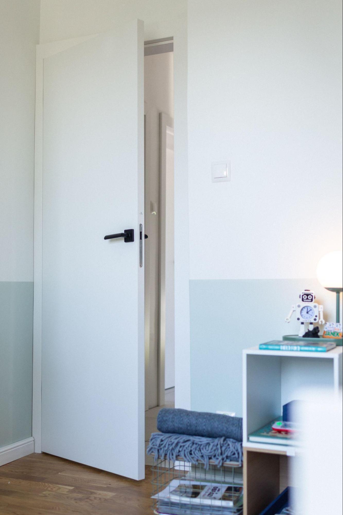 Zwieńczeniem minimalistycznej aranżacji stały się drzwi bezprzylgowe Fina z czarną klamką. Proste skrzydło pokryte farbą w kolorze ponadczasowej bieli sprawdzi się zarówno w pokoju małego chłopca, jak i dorastającego nastolatka. Wykorzystując proste i sprawdzone rozwiązania, mogliśmy wydłużyć czas do kolejnego remontu, na czym szczególnie zależało Kasi, żyjącej w stylu less waste – tłumaczy Natalia Całus, stylistka VOX.