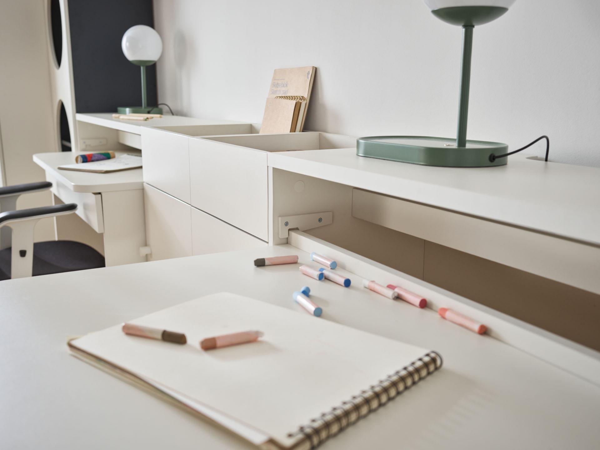 Jeśli w mieszkaniu brakuje miejsca nawet na małe biurko, pomyślmy o wykorzystaniu sprytnego stołu w jadalni. Ten z kolekcji 4 You Fresh, ze swoim wielofunkcyjnym blatem, jest doskonałym rozwiązaniem. W razie potrzeby przestrzeń roboczą przedłużymy dzięki specjalnym wkładkom, a praktyczne schowki pod blatem pomieszczą biurowe akcesoria i różne bibeloty.