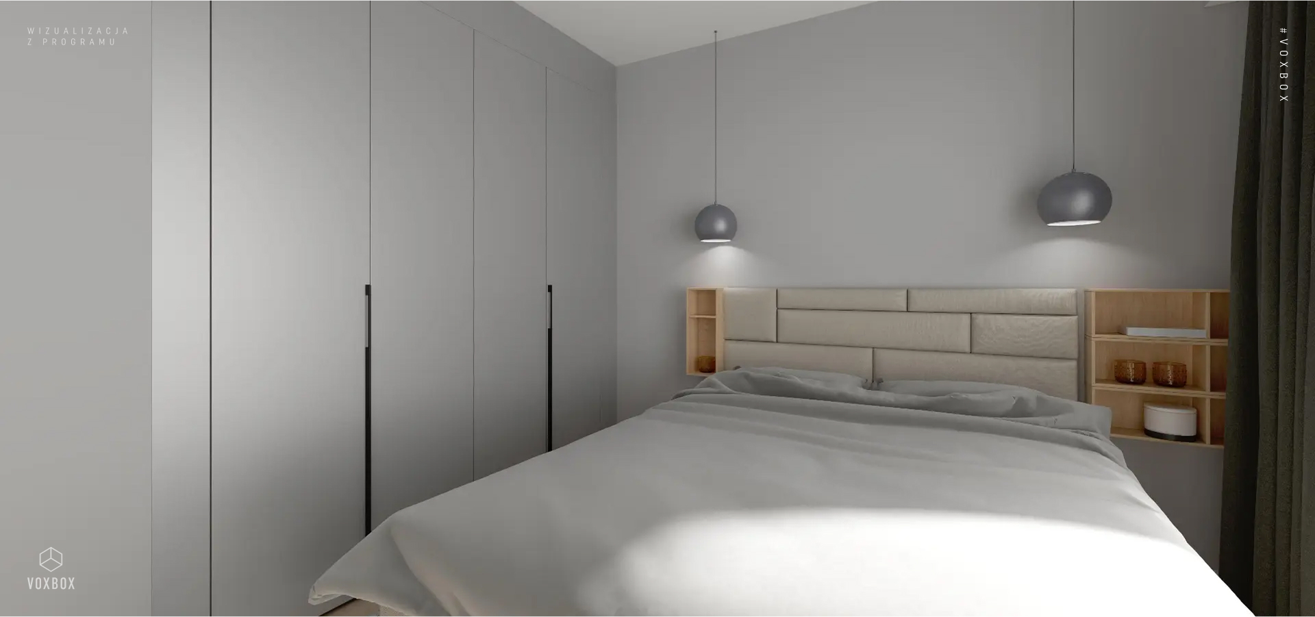 Połączenie szarych ścian z wyposażeniem w pastelowej tonacji jest świetnym rozwiązaniem do sypialni. Komfortowe łóżko z miękkim zagłówkiem przeniesie relaks na nowy poziom, a zwisające nisko z sufitu lampy zastąpią klasyczne lampki nocne. Poczucie komfortu jeszcze bardziej podkreśli rozłożona na łóżku narzuta i lekkie zasłony, które otulą wnętrze miękkim światłem.
