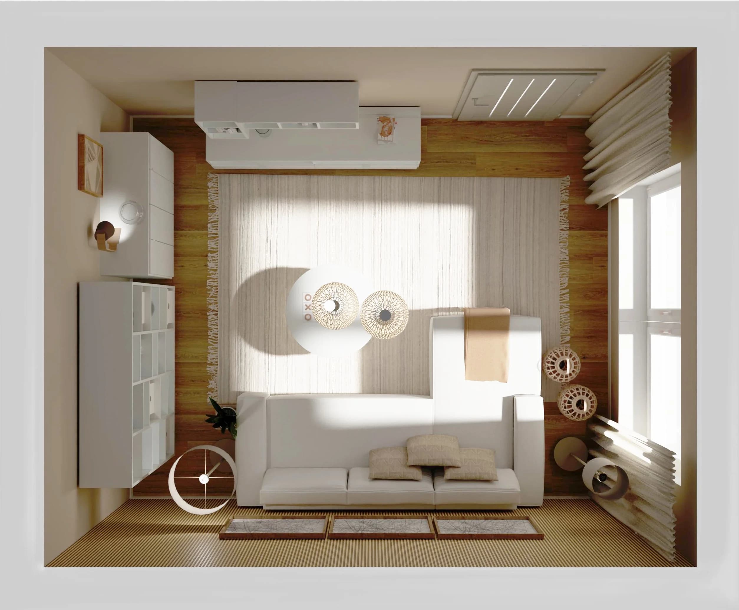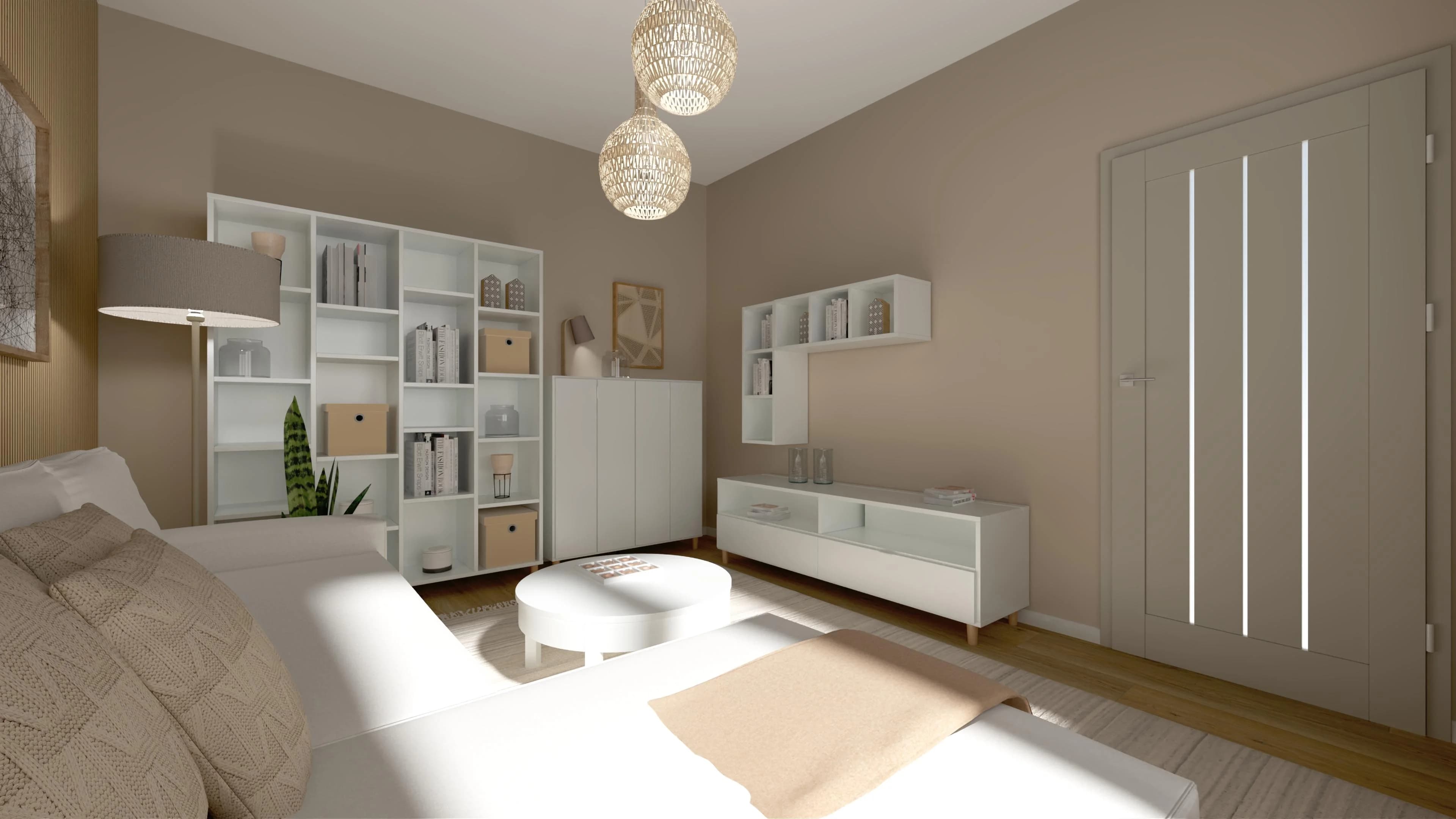 Ciepło drewna i miękkość beżu w małym salonie