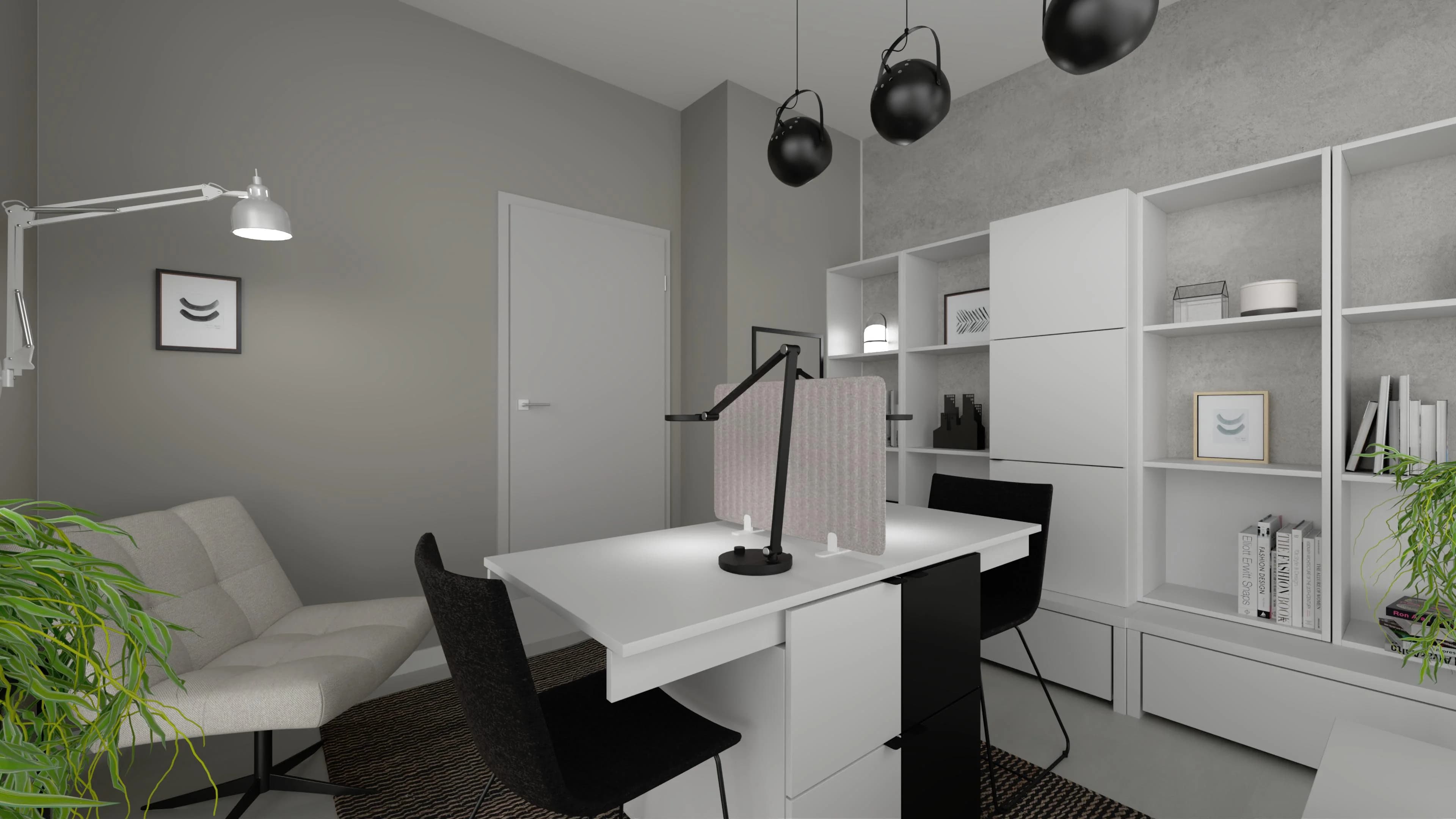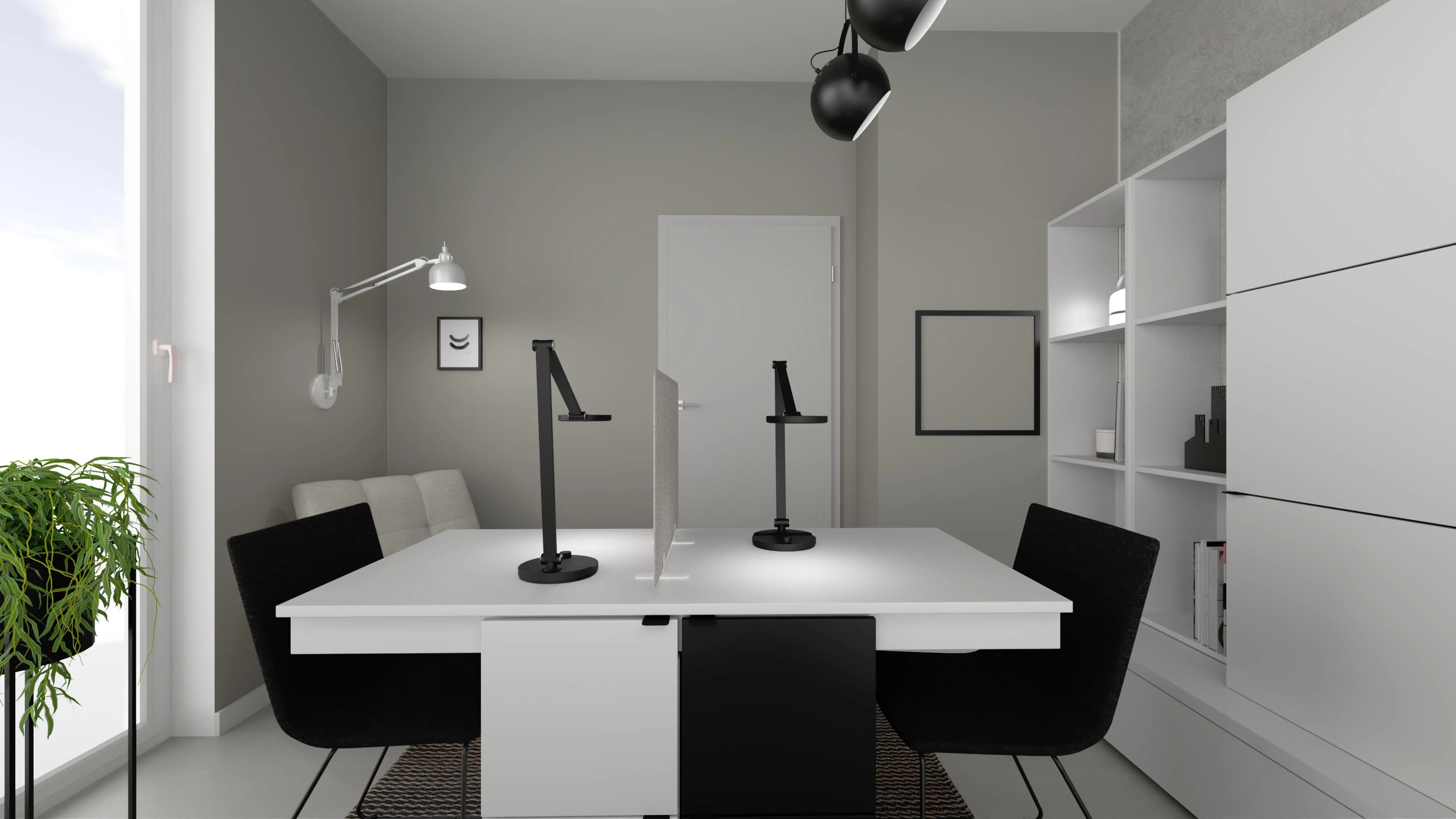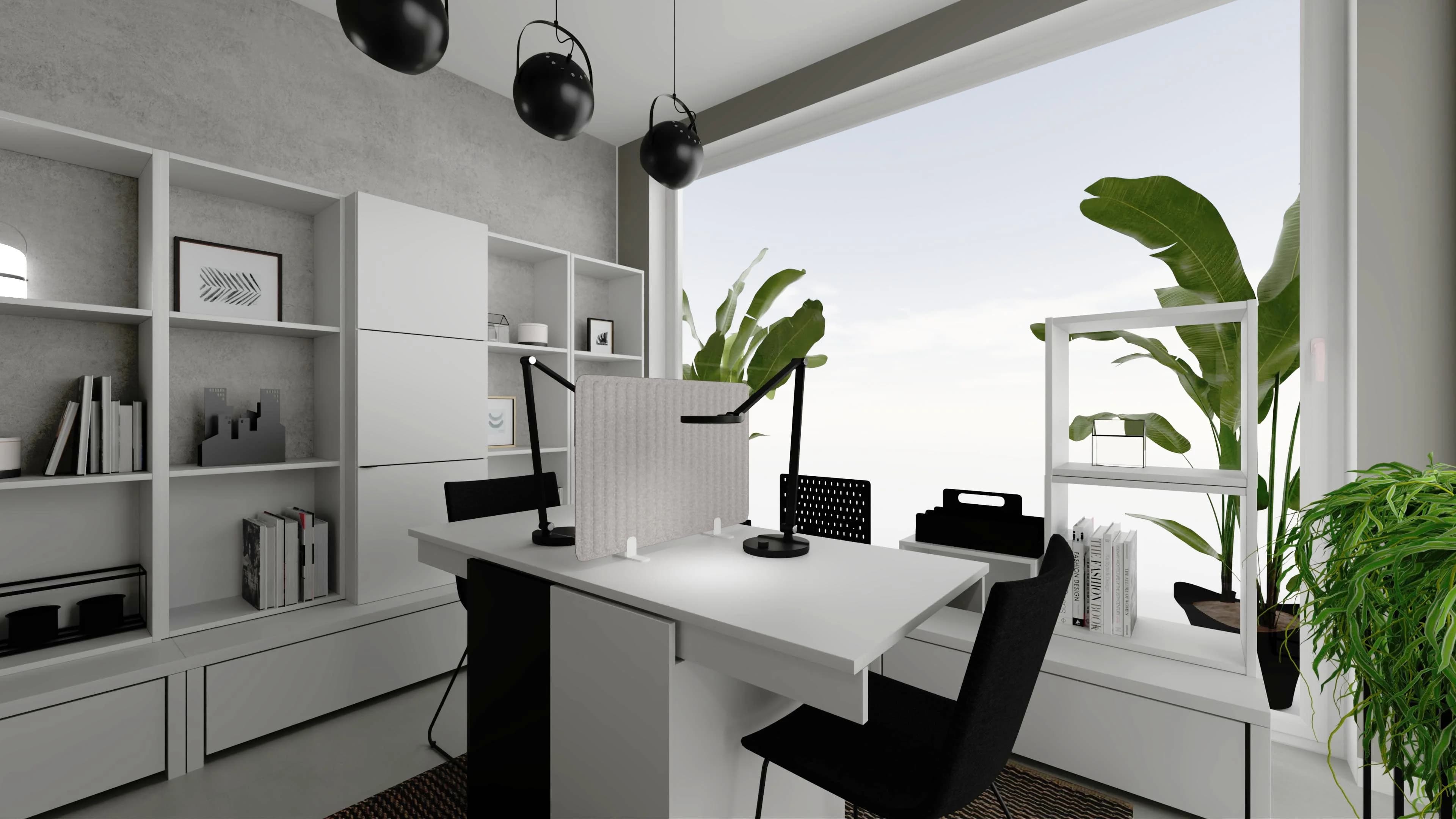 Nowoczesny duet – biel i czerń w gabinecie dla dwóch osób