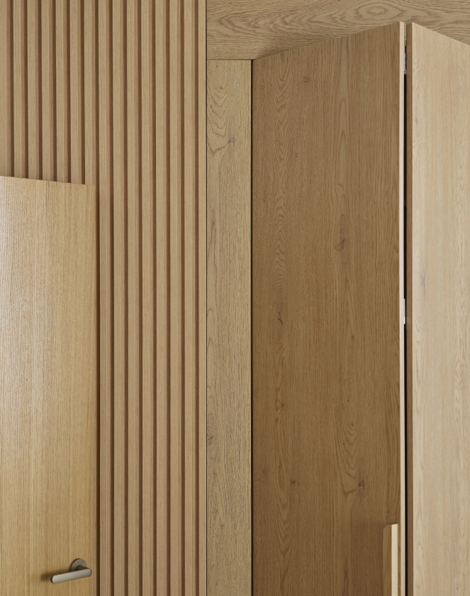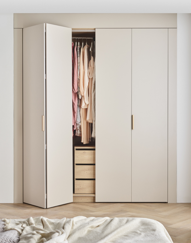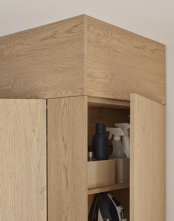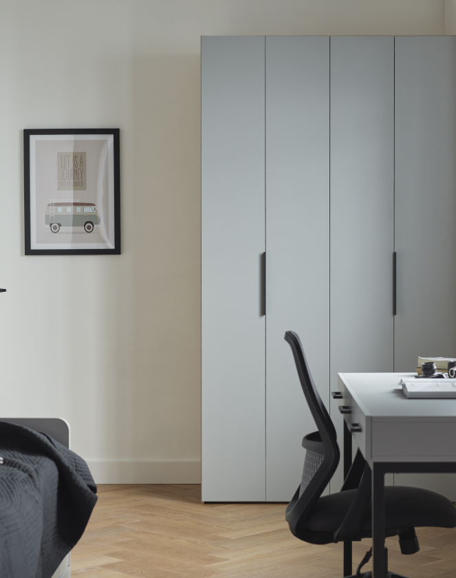 Ta dodatkowa przestrzeń zachwyci Cię funkcjonalnością. Przechowasz więcej w miejscu zazwyczaj niewykorzystywanym. Wyposażyliśmy ją w wewnętrzne lustro i miejsce na rzeczy, dla których często brakuje dedykowanego miejsca: deska do prasowania, mata do jogi, żelazko, paski, torebki czy szale.