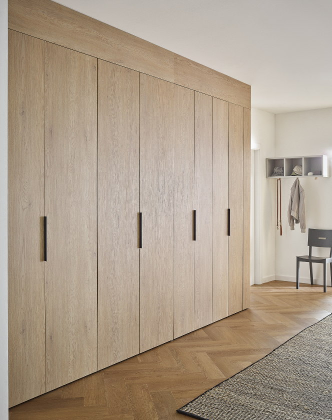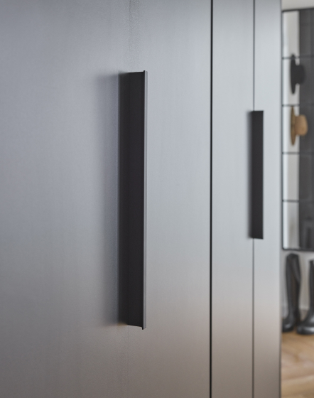 Dla systemu szaf Stor stworzyliśmy dedykowaną paletę uchwytów. Każdy z nich nadaje finalny charakter meblowi. Smukłe, długie warianty są niezwykle dekoracyjne, z kolei drewniane czy złote będą subtelniej zdobić całość.