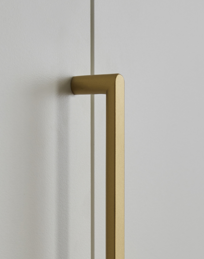 Piękny, ciepły odcień złota o delikatnym różowym zabarwieniu idealnie komponuje się kolorami frontów Stor. Uchwyt jest prostokątny, o lekko zaoblonych krawędziach. Szczotkowana powierzchnia daje subtelny, satynowy efekt.