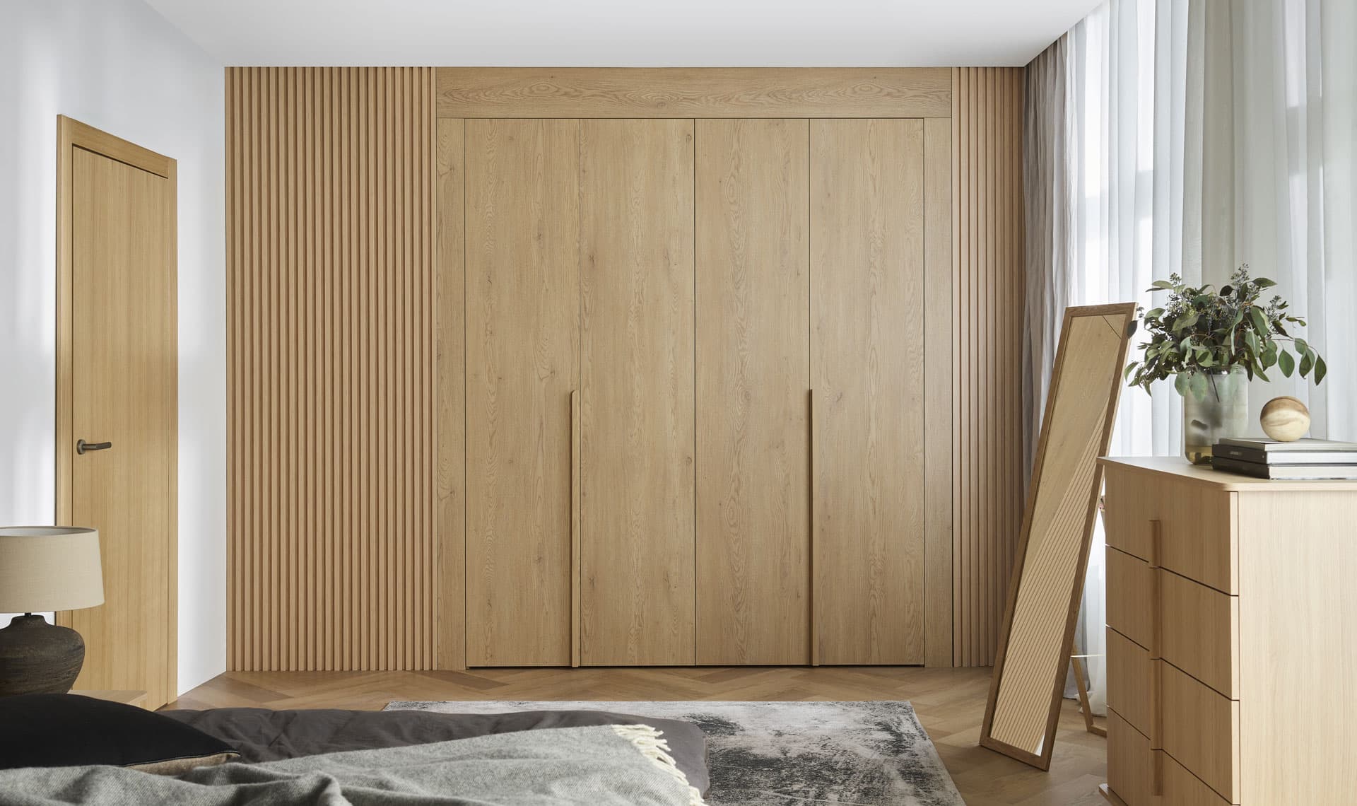 Korpusy szaf mają dębowy dekor – jasną, naturalną barwę drewna, pasującą do różnych aranżacji. Różnorodność uchwytów pozwala nadać meblom indywidualny charakter i dopasować je do stylu wnętrza. Dostępne są w wersji czarnej, dębowej, złotej czy różowego złota.