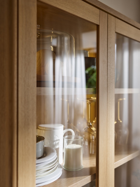 Całość dopełniają podświetlane witryny oraz bufet, idealny do przechowywania zastawy, obrusów i wszystkiego, co buduje atmosferę wspólnych posiłków.