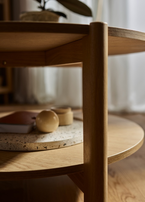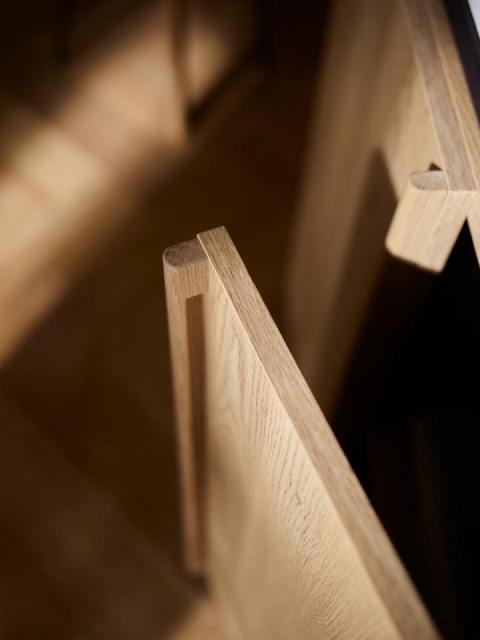 Stelaże i uchwyty z naturalnego drewna wprowadzają ciepło oraz przyjemny w dotyku, naturalny akcent. Stanowią także fundament stabilności i długowieczności tych mebli.